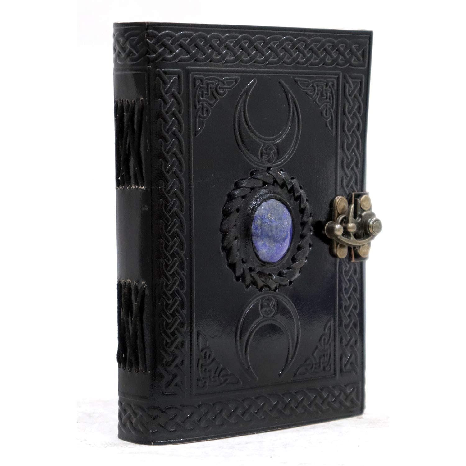 AzureGreen – 3 Moon Black Lapiz Journal – Gemstone Studded Handmade Vintage Writing Notebook, Unlined
