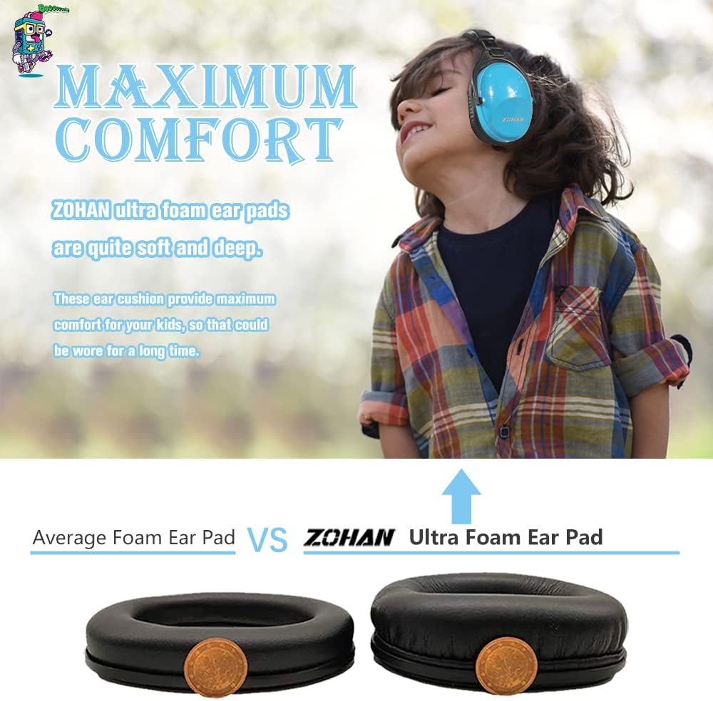 Safe and Comfortable — The Safety Earmuffs are all wrapped in a cushioning headband, which is comfortable, safe and stable. The ear pad is made of thick sound insulation foam, which is durable. The ZOHAN Kids Ear Defender don’t have any metal parts which might potentially hurt your children