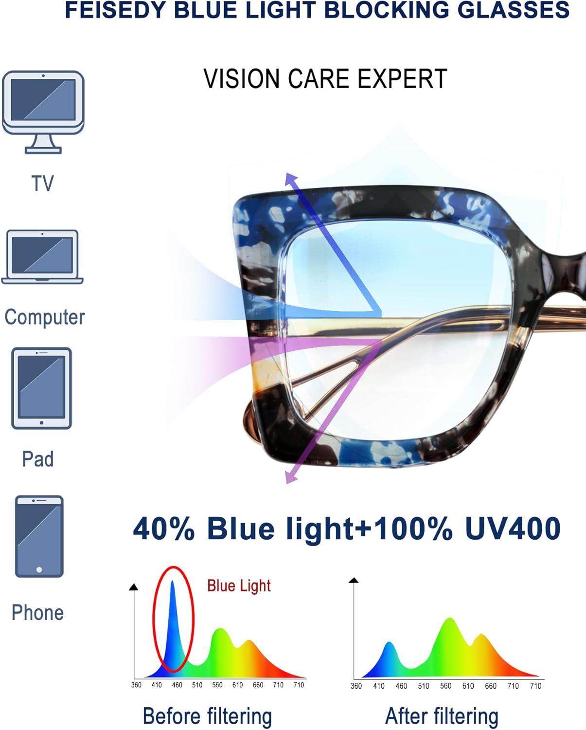 FEISEDY Blue Light Blocking Glasses Block harsh blue light,