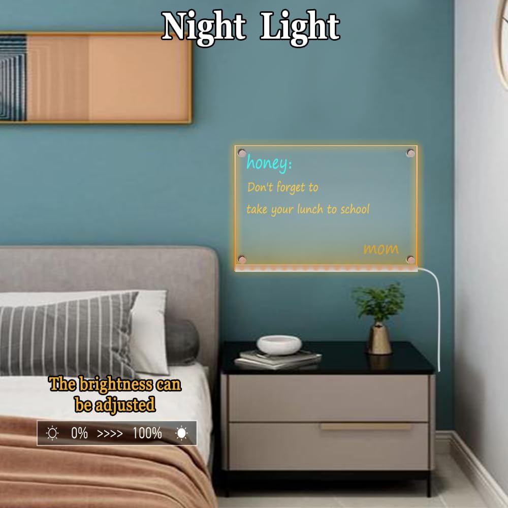 【Creative Night Light】: It is both a decorative light and a message board, a motivator to keep track of your daily tasks. Write short reminders, your to-do list, words of encouragement, your calendar, record your habits and organize your life. High quality LED warm white light, soft light, not harsh and harmless to children’s eyes. Multi-color LED luminous light illuminates the transparent acrylic panel, showing beautiful effects and creating a romantic atmosphere.