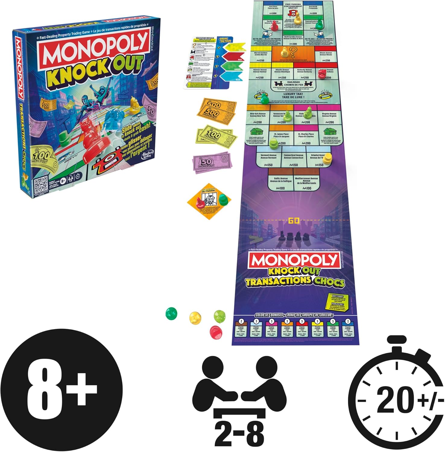UP AND ACTIVE FAMILY PARTY GAME: Slide tokens to knock out rivals and grab cash in the Monopoly Knockout game It’s all fans love about the Monopoly game in a lively party game that gets the family moving