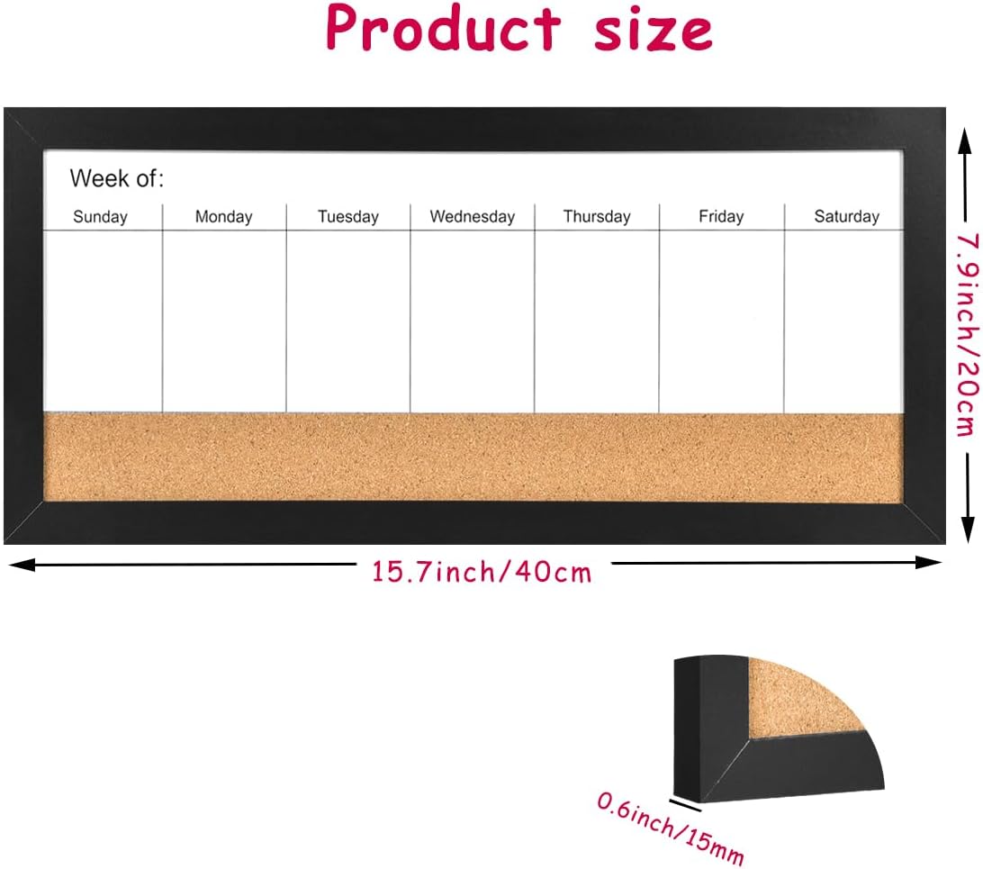 【Weekly Calendar Board】 The magnetic surface writeboard weekly calendar & cork board/bulletin combo board is in size of 15.7 x 7.9 inches (40 x 20 cm). (Magnets and markers are NOT included),And it comes with hanging hardware.