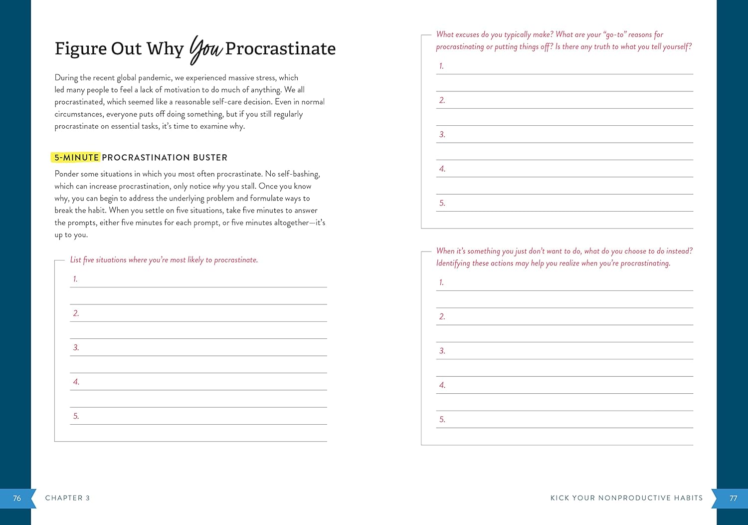Stop procrastinating, start accomplishing, and take charge of your life! This workbook’s 130+ writing prompts and exercises will guide your way.