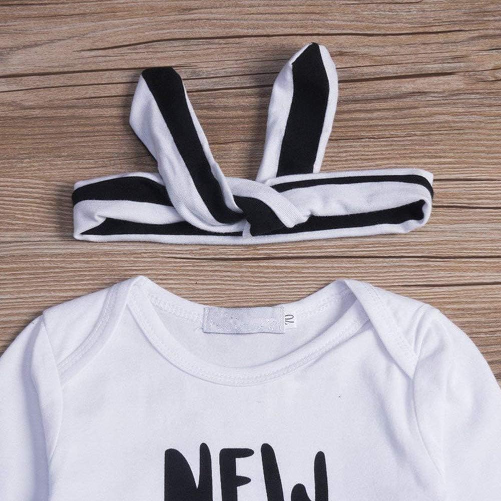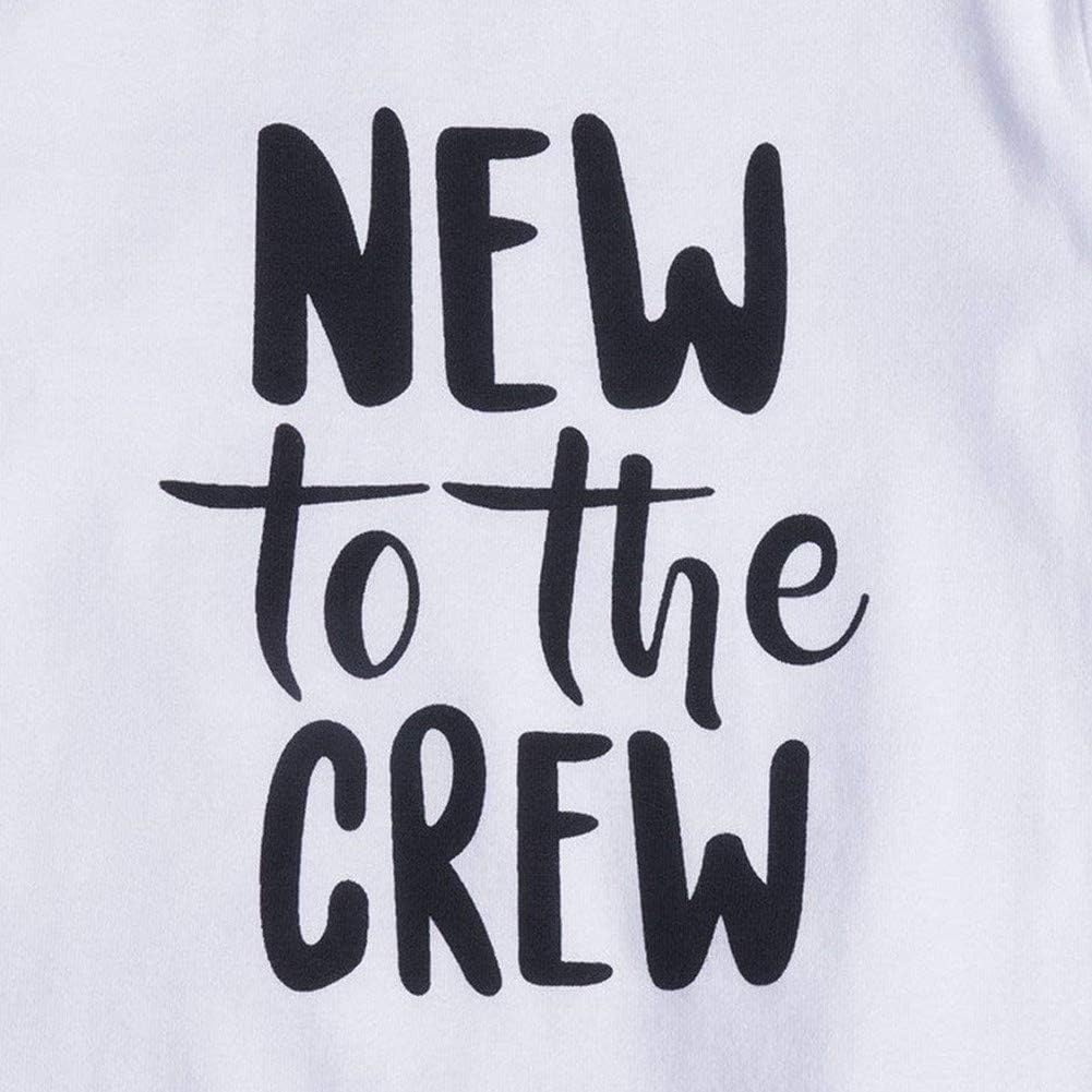 Baby Girl Boy Clothes Set New to The Crew Print Long Sleeve Romper + Striped Pants+Hat+ Headband 4pcs Outfits
