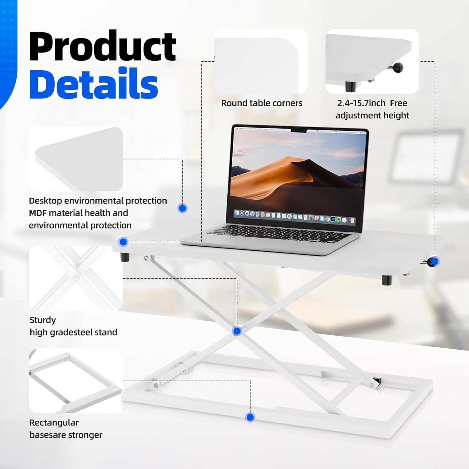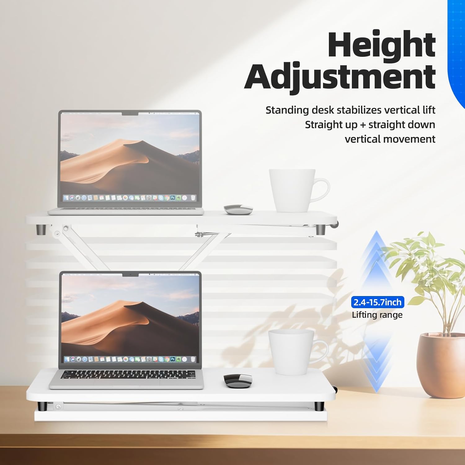 Hoodutric Standing Desk Converter Height Adjustable, Sit to Stand up Desk Riser Computer Workstation use in Laptop and Single Monitor Ergonomic Desktop Workstation for Home Office – White