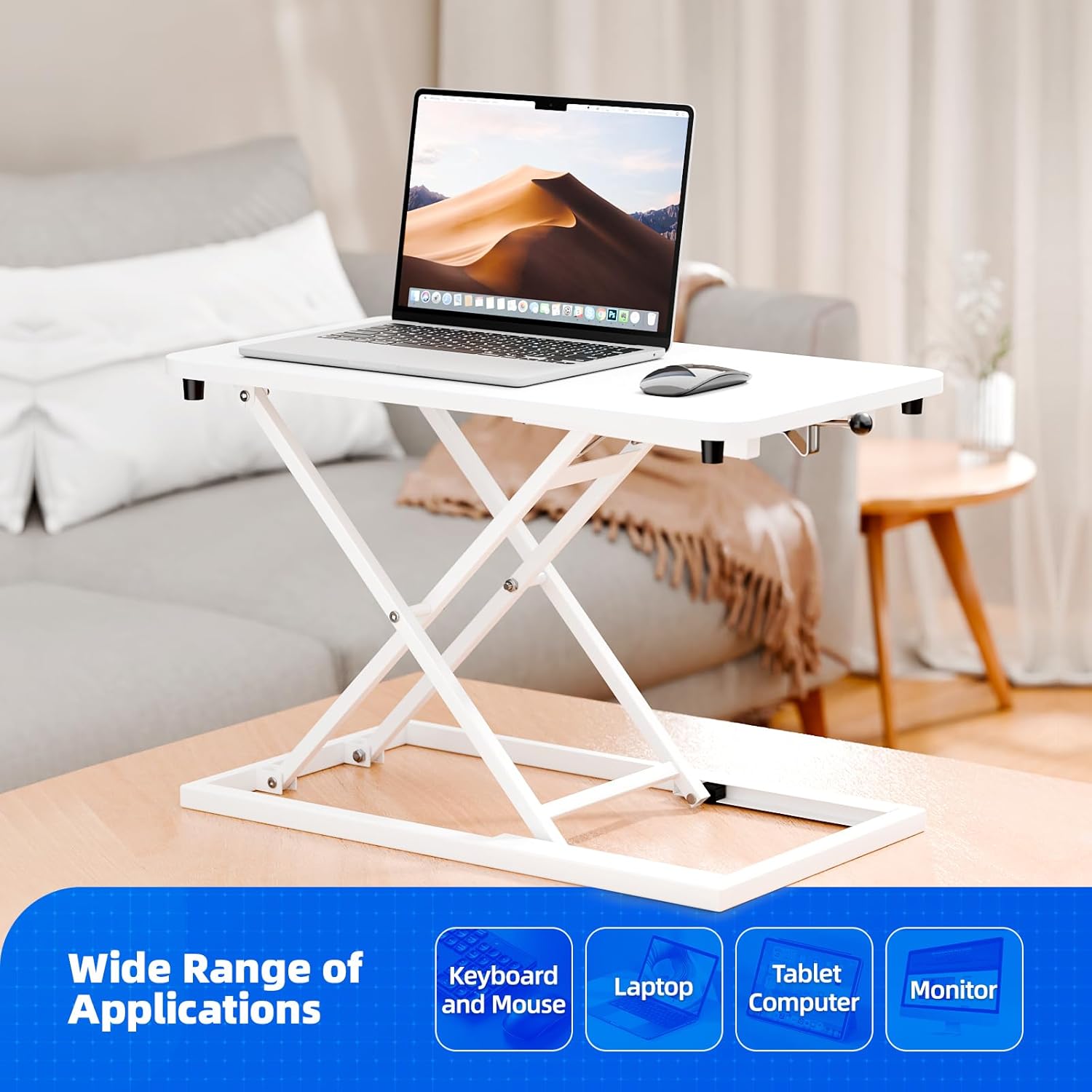 Space-Saving Design: Our standing desk converter converts a traditional desk into a multifunctional workstation that alternates between sitting and standing, with a desktop size of 24″x 13.8″, the compact design is perfect for office workers.