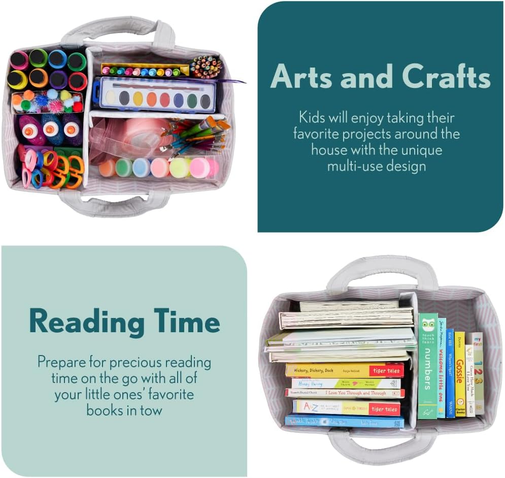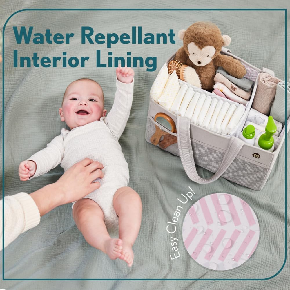 PORTABLE AND EASY TO CARRY: effortlessly carry all baby essentials from room to room with oversized and comfortable handles; perfect for busy parents on the move; maximize space with caddy’s foldable design; ideal for neat storage when not in use