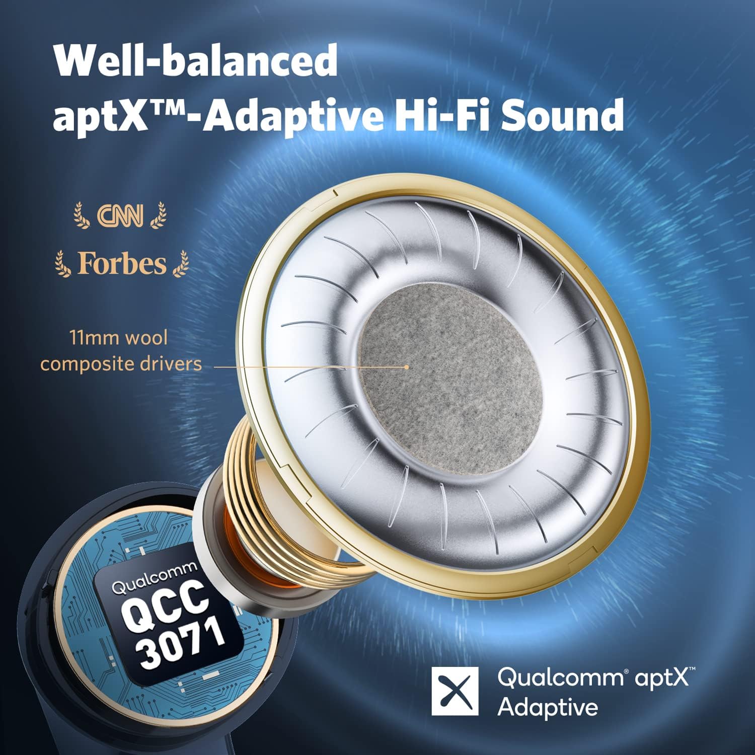 Equipped with Qualcomm aptX Adaptive audio and 11mm wool dynamic driver, providing powerful sound.
