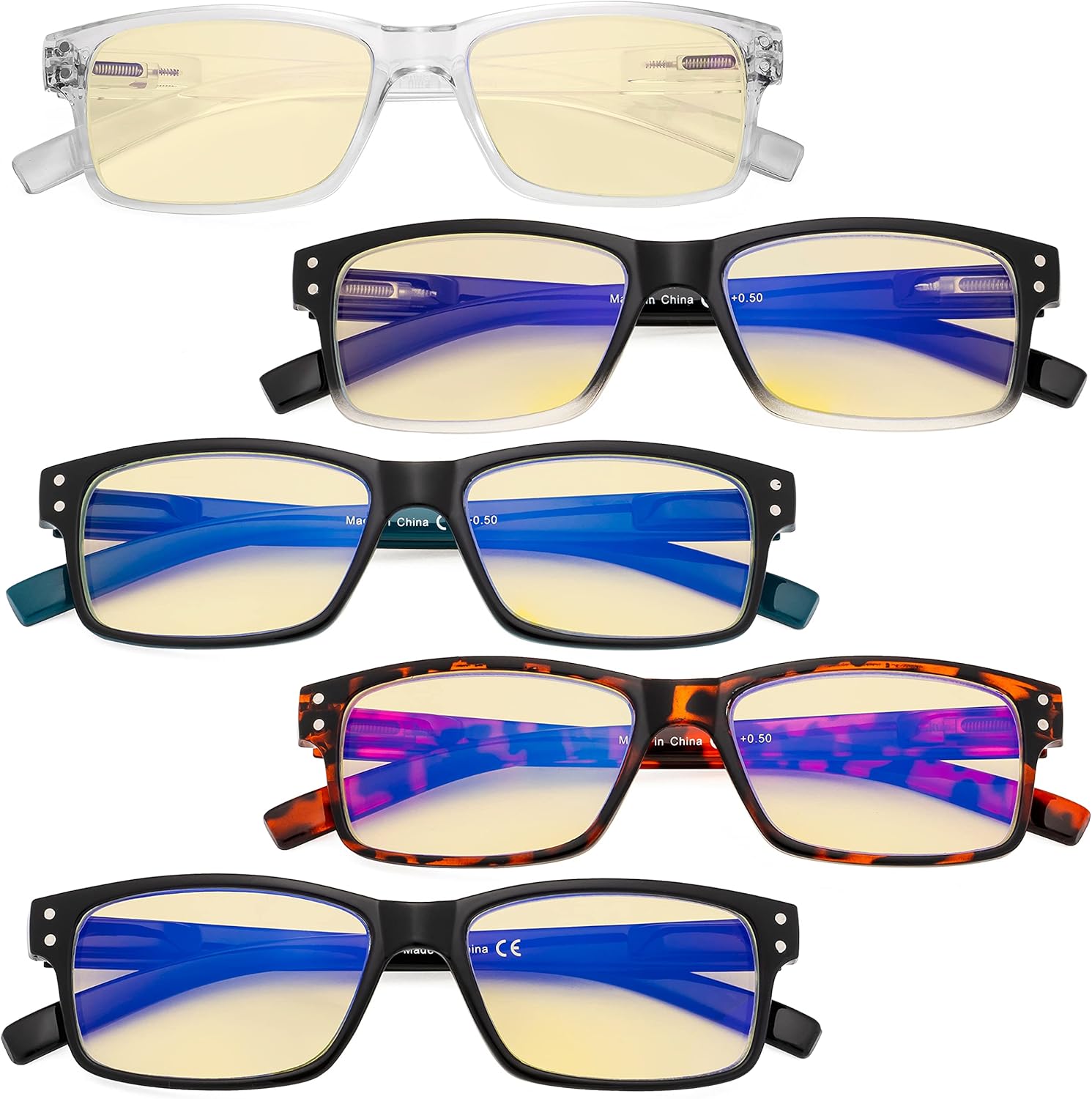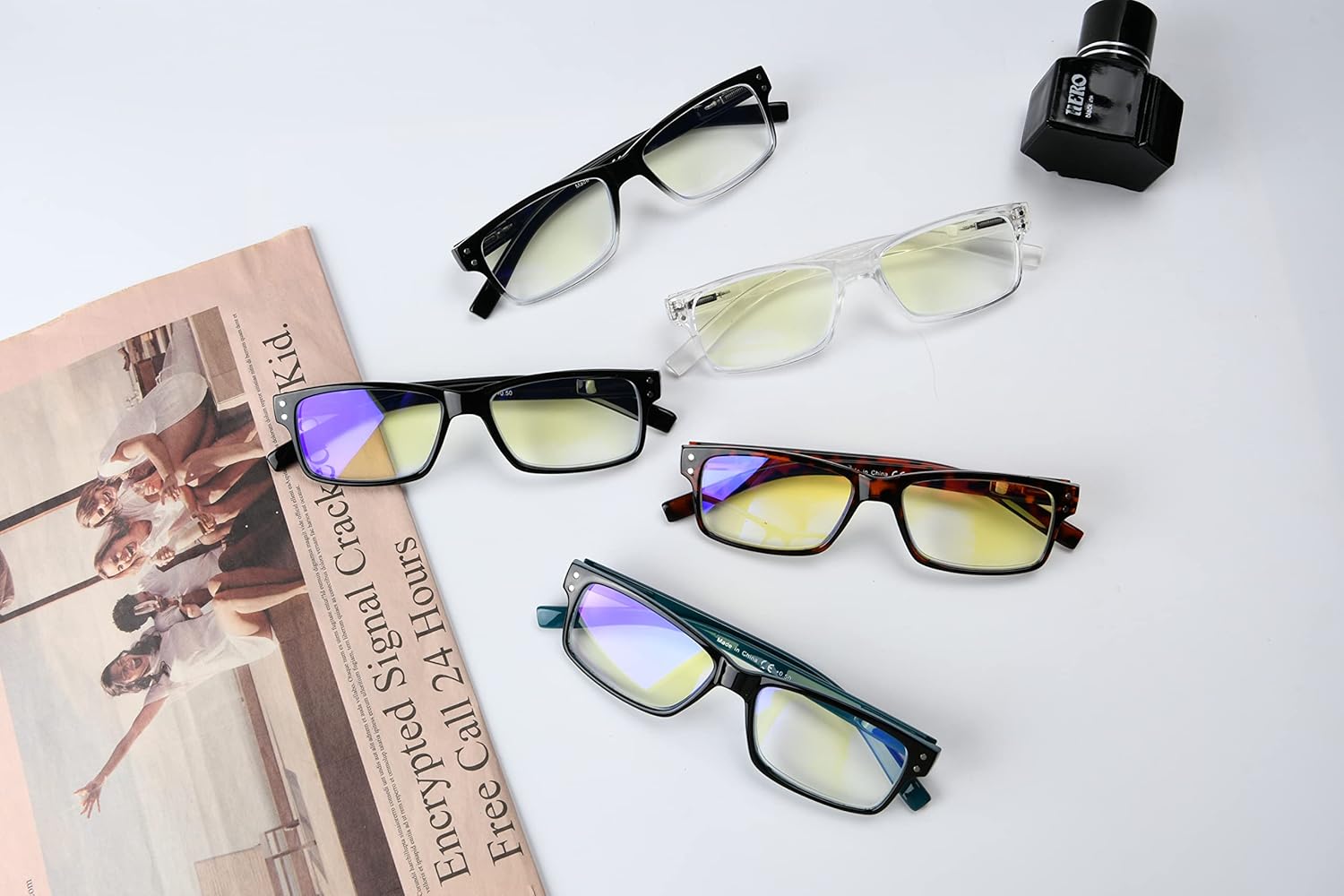 5 Pack of Blue Light Blocking Readers ☛ convenient Set of 5 blue light block glasses means you’ll have a pair handy wherever you are. Keep a pair in your favorite reading spots