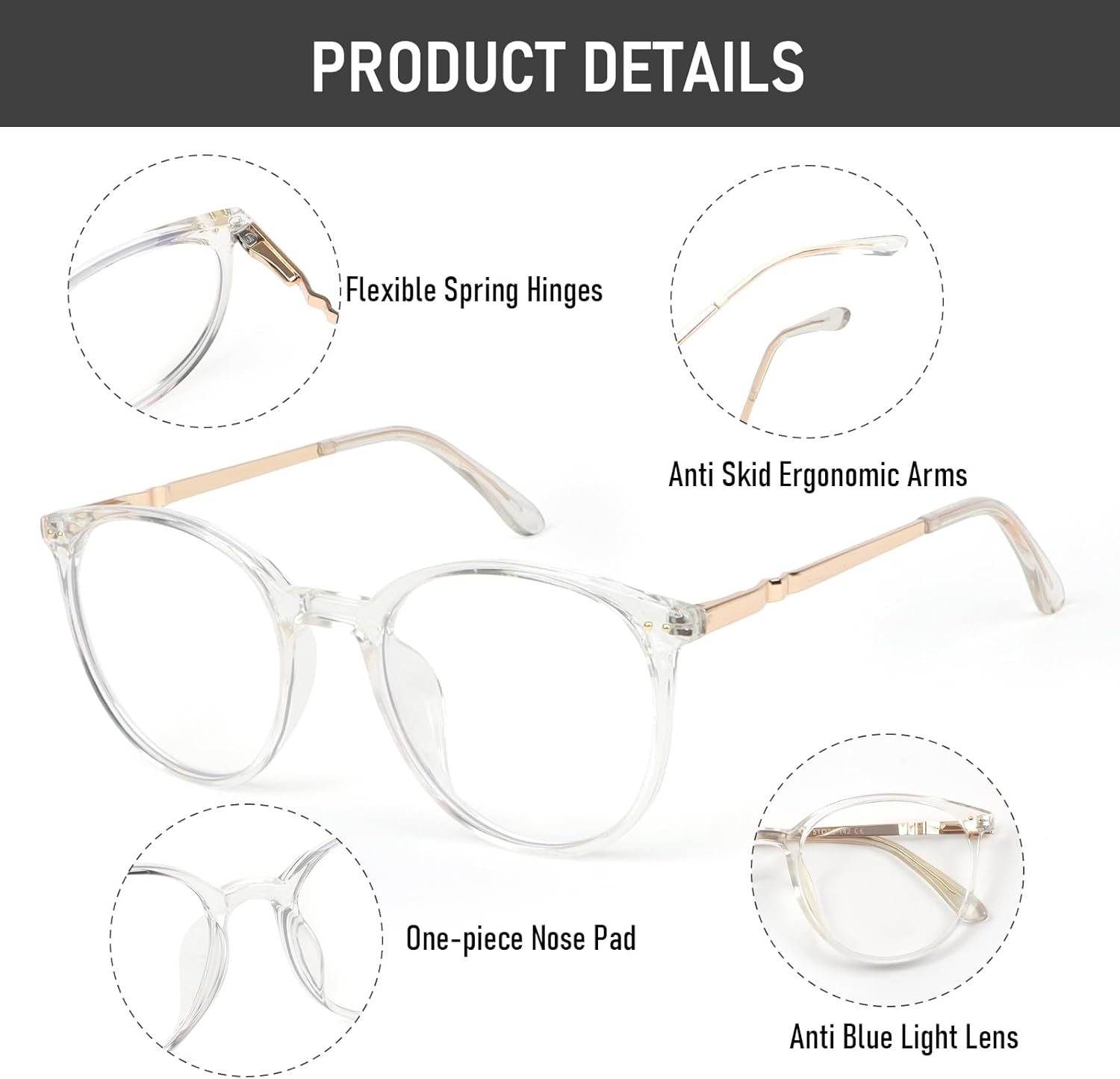 5 reviews for DXYXYO Blue Light Blocking Glasses Women, TR90 Metal Frame Transparent Anti Blue Light Computer Eyeglasses