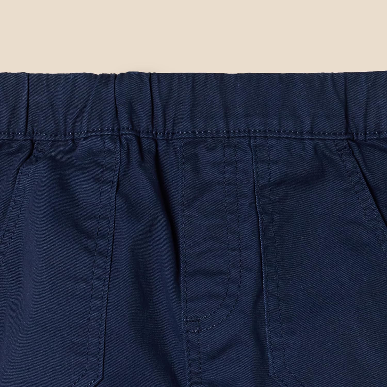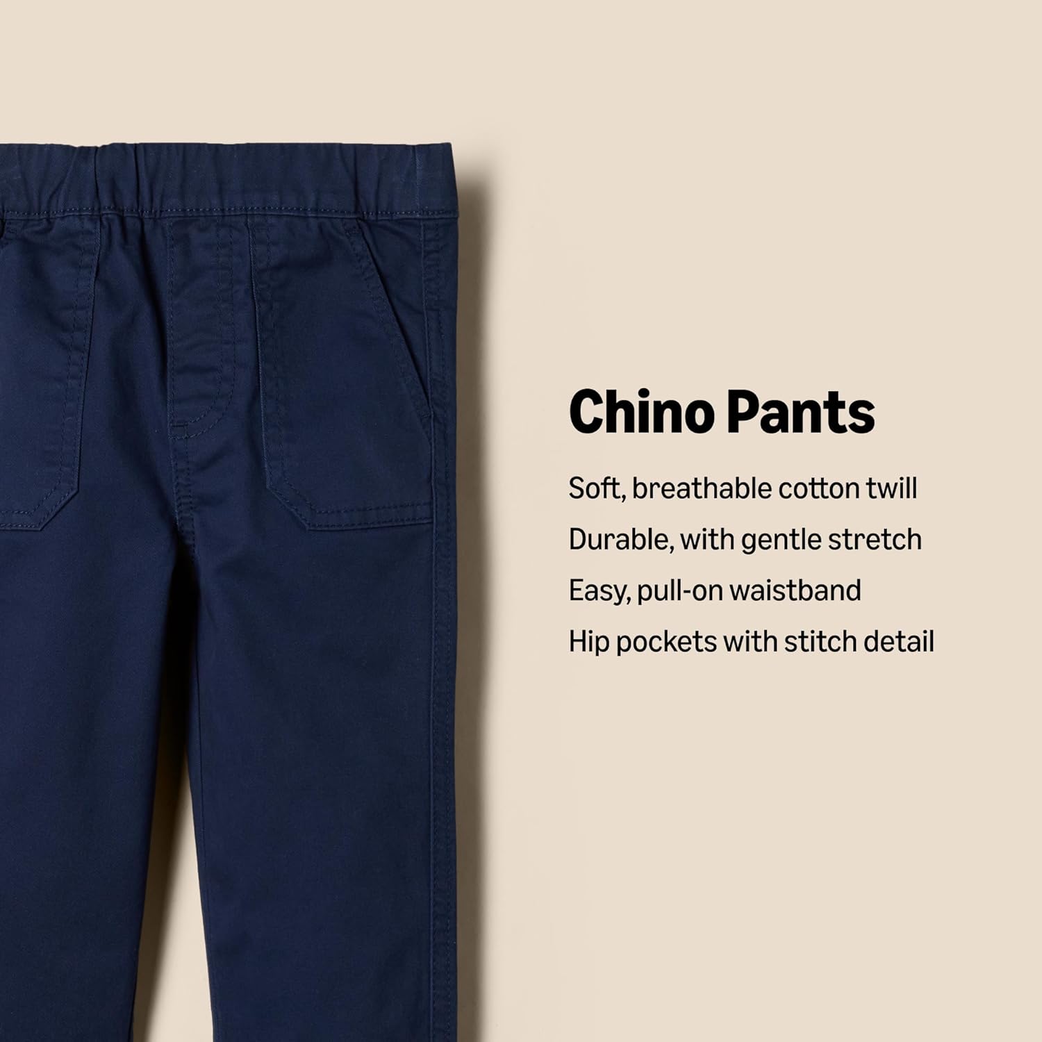 These chinos are made from a midweight, soft, breathable cotton twill with added stretch for extra comfort. The fabric is naturally durable, ensuring that the pants can withstand the wear and tear of active play. The classic design features a pull-on waistband with interior elastic and hip pockets with topstitching details. The relaxed fit through the hip and thigh provides ample room for movement, making these chinos perfect for toddlers and young boys. The stretch fabric ensures that the pants are comfortable and easy to move in, while the pull-on waistband makes them easy to put on and take off. These chinos are versatile enough to be worn for various occasions, from casual playdates to more dressed-up events. The timeless design and neutral color options make them easy to pair with a variety of tops, allowing for endless outfit combinations.