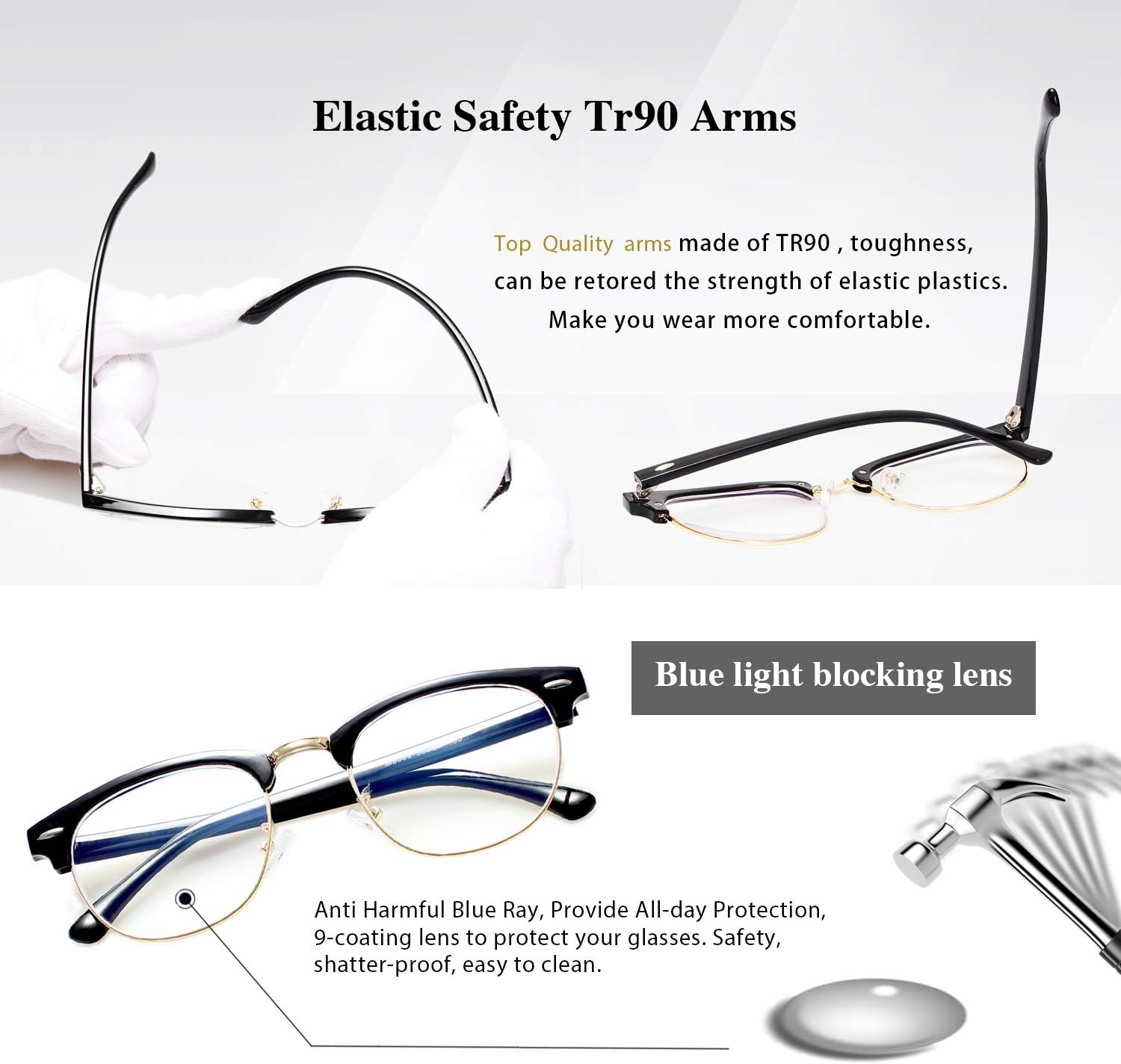 【Protection Your Eyes】–+0.0x Blue Light Blocking Glasses, Anti Harmful Blue Ray, Provide All-day Uv Protection, Against The Detrimental Effect High Energy Visible Blue Light And Uv400.
