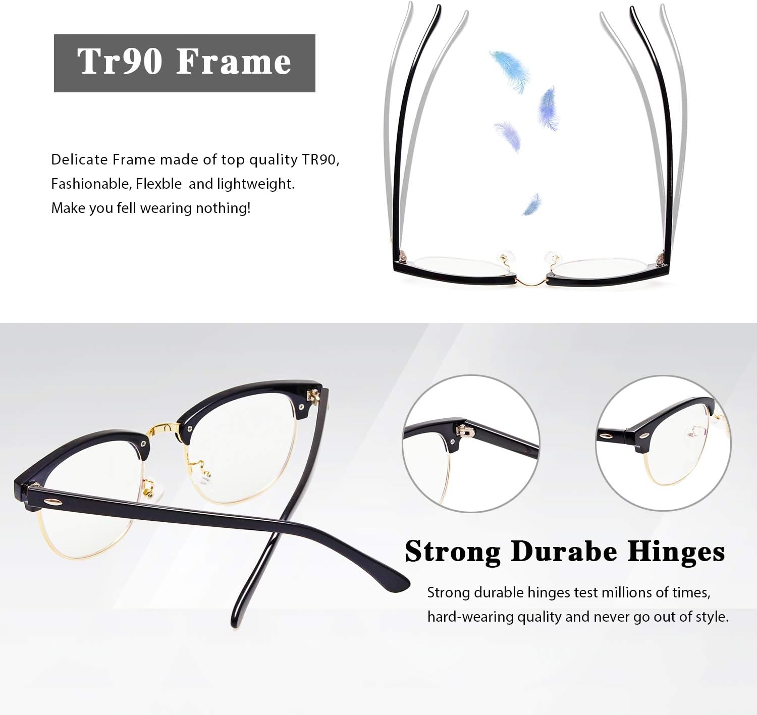 【Lightweight Comfortable Frame】– Fashion, Comfort, Lightweight, Using High Quality Tr90 Frame And Hinges, To Bring You Lasting Enjoyment. With Our Fashionable And Modern Designer, It’s Very Comfortable To Wear, Suitable For All Kinds Face Shape.