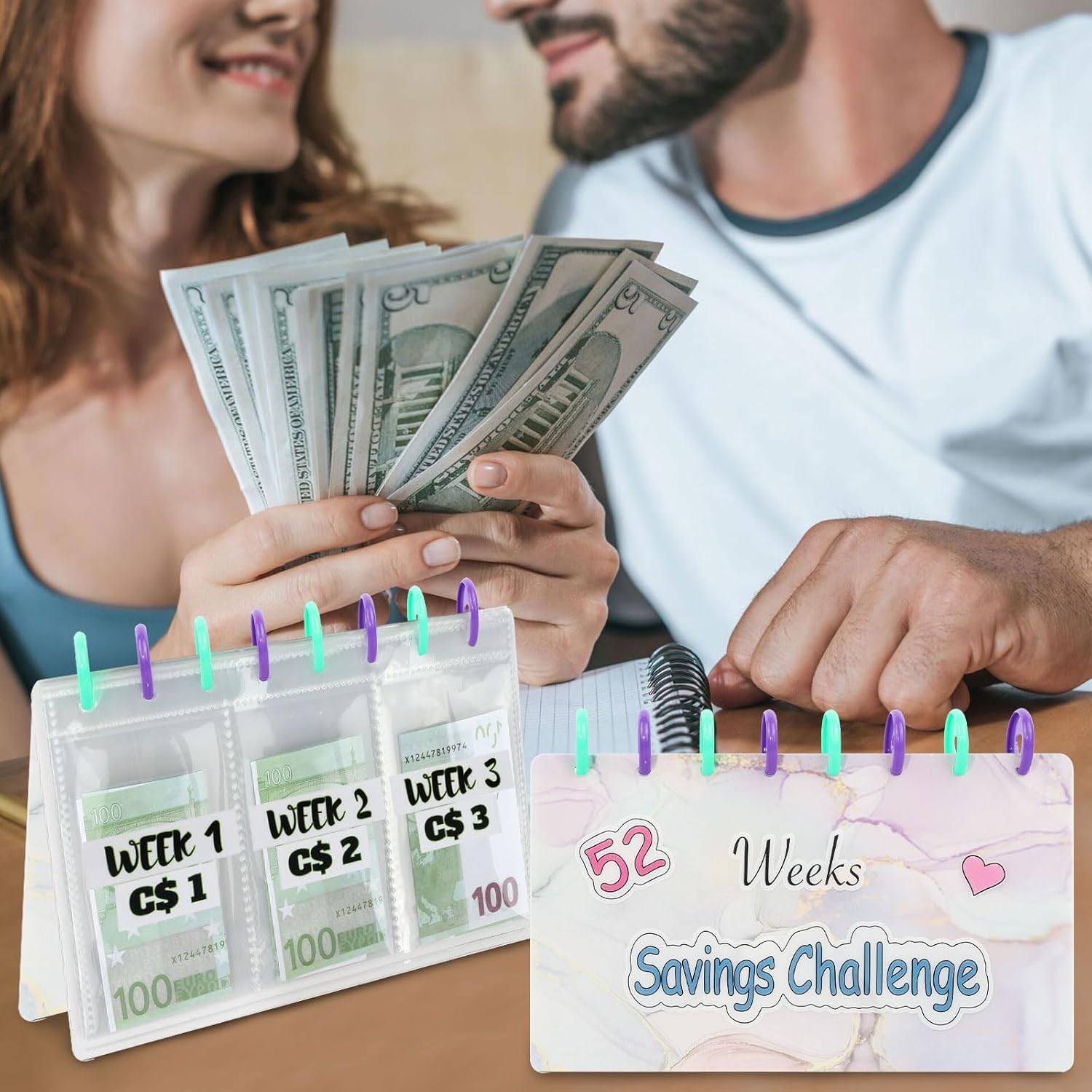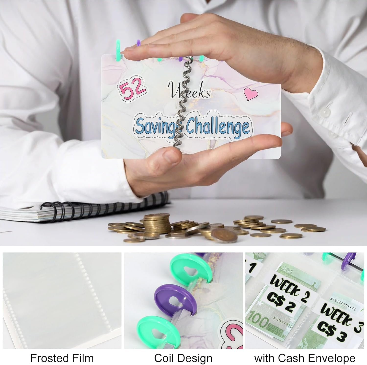 💎【Premium Quality】 52 Weeks Money Saving Binder consists of a cash envelope and binder made of high-quality PVC material, long-lasting and durable, ensuring all your bills and cash are safe and protected during your challenge. Its tear-resistant and waterproof design ensures total protection for your money. Compact size, 8.4*5.1 inches, is portable and easy to store. Unique design ensures durability and security, making it easy for you to save money.