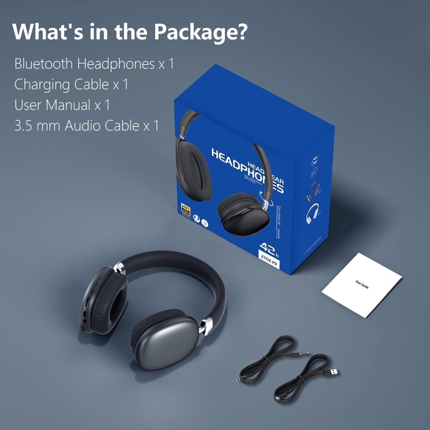 【AFTER SALE SUPPORT】 Package include a ZTOZ Wielress Bluethooth Headphone, 3.5mm backup audio cable, USB charging cable and User Manual. 30 days free return and 12 months warranty.