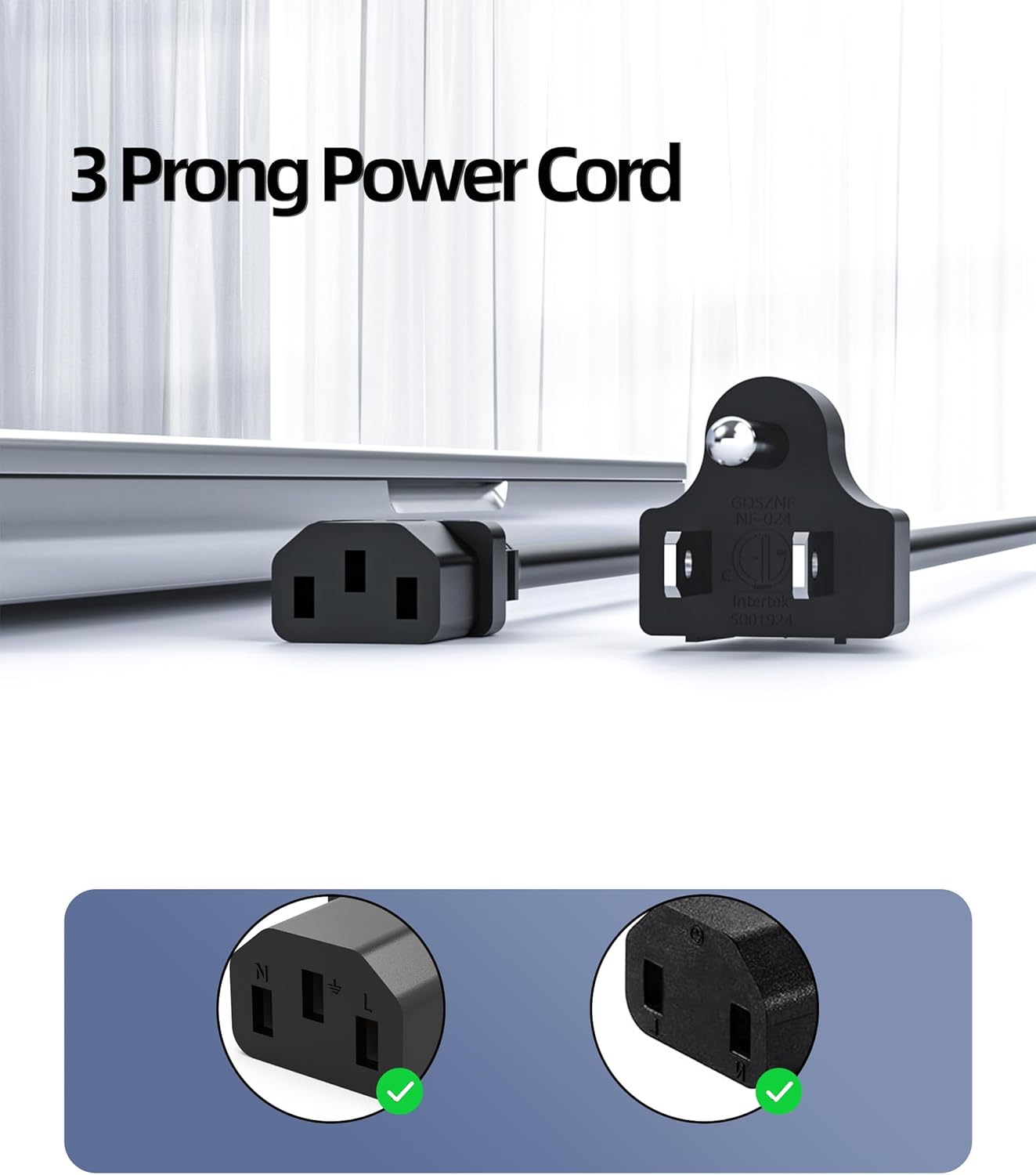 ETL Listed/ Safety: ETL Certified Power Cord, Giving You Much More Safety Guarantee While Using It.