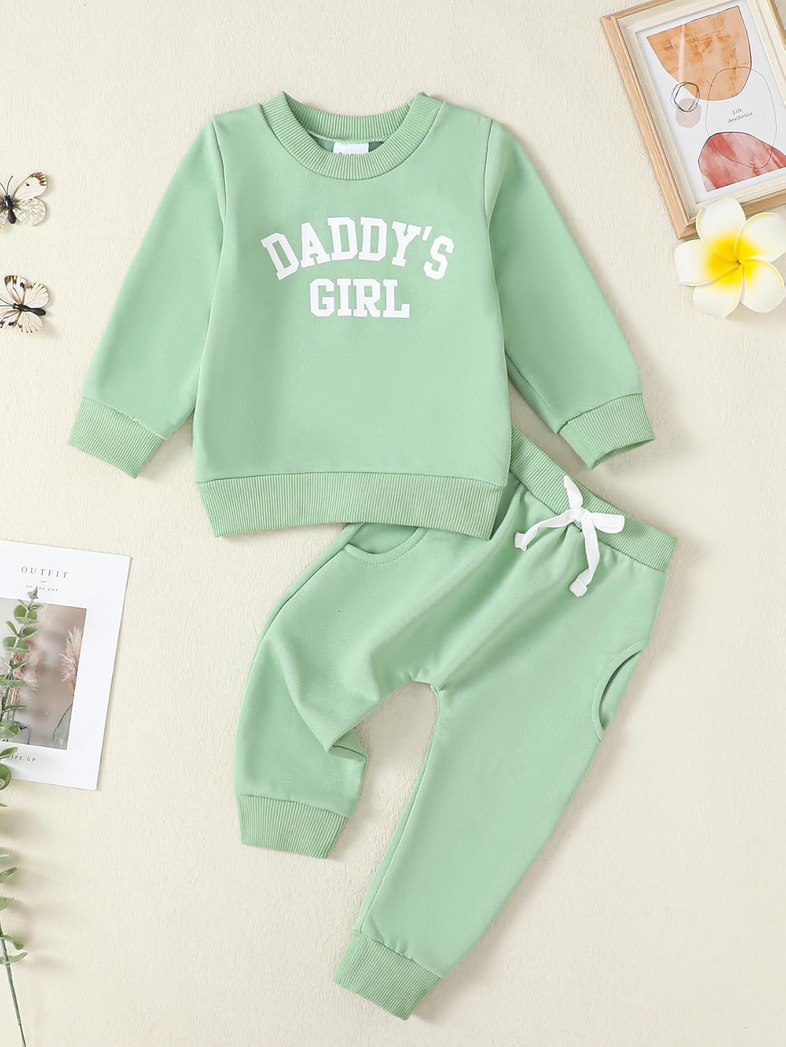 3M-3T Daddys Toddler Baby Girl Clothes Long Sleeve Letter Print Sweatshirt+ Pants 2Pcs Baby Girl Outfits Set