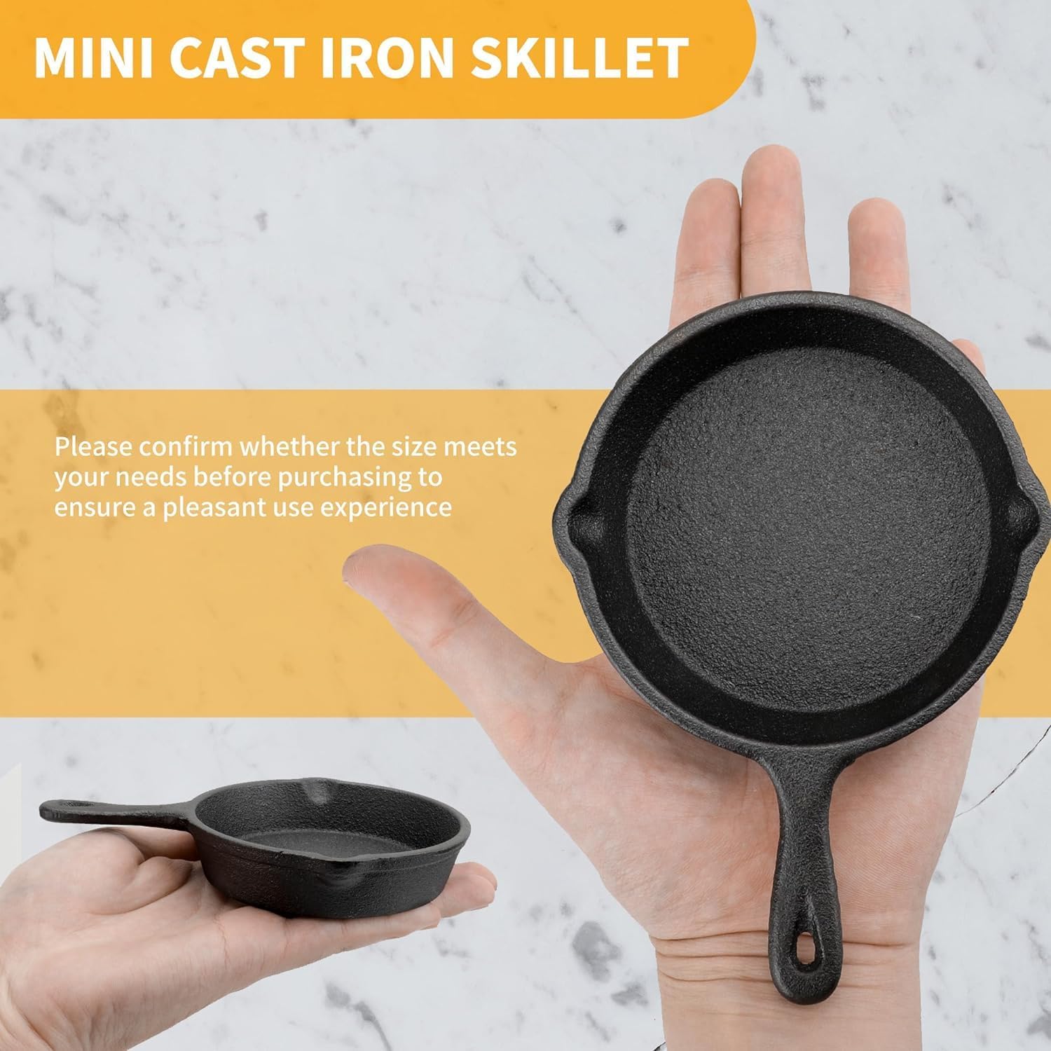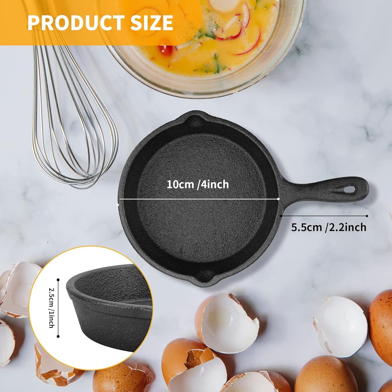 Package Includes:You will get 4PCS mini cast iron skillet, the diameter of the small iron skillet is 4 inch/10 cm, the quantity is sufficient to meet your daily needs