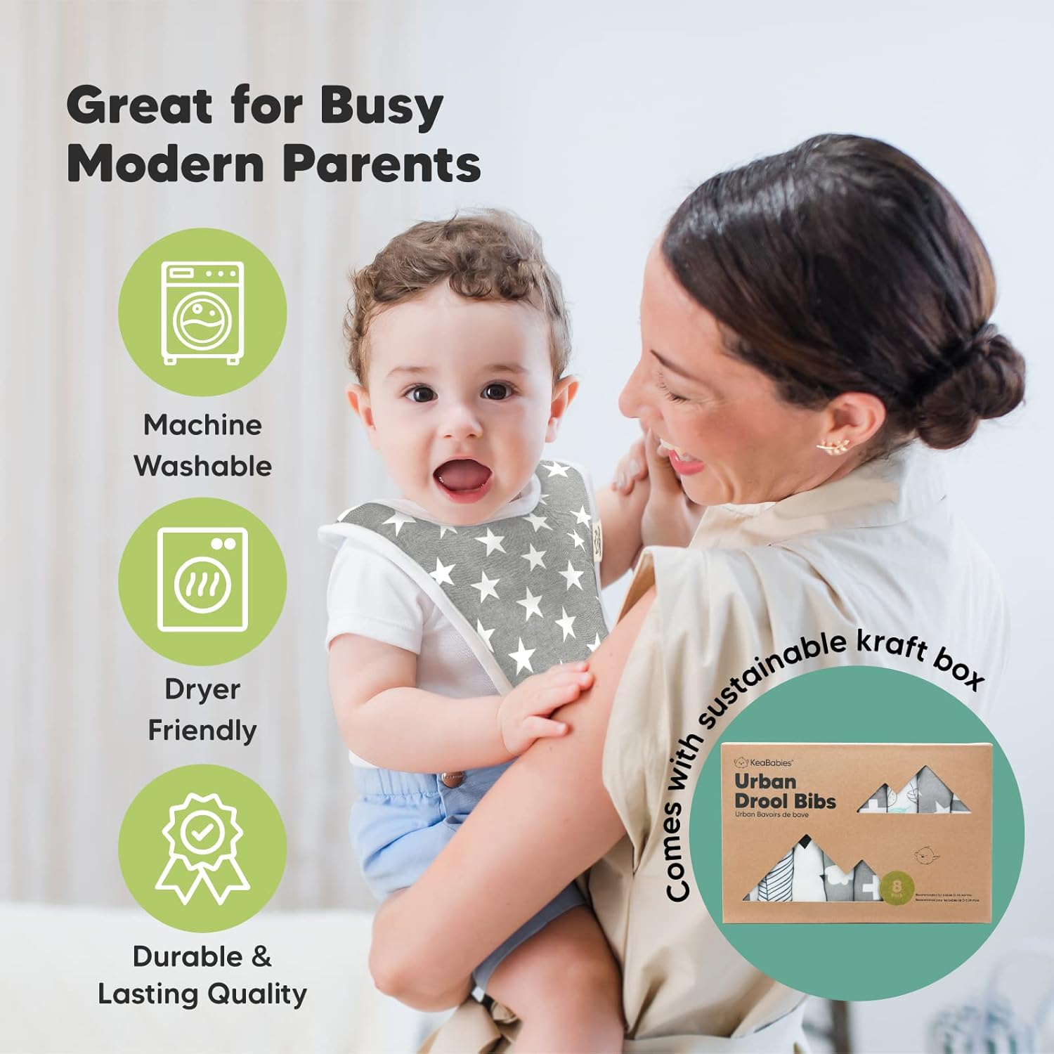 8-Pack Cute and Stylish Baby Bibs for Boy and Girl – Our organic baby boy bibs and girl bibs are exclusively designed by KeaBabies to ensure that your baby never runs out of styling options. Our baby bibs are unisex and easy to match, making them a fuss-free teething baby essential and styling accessory for modern parents.