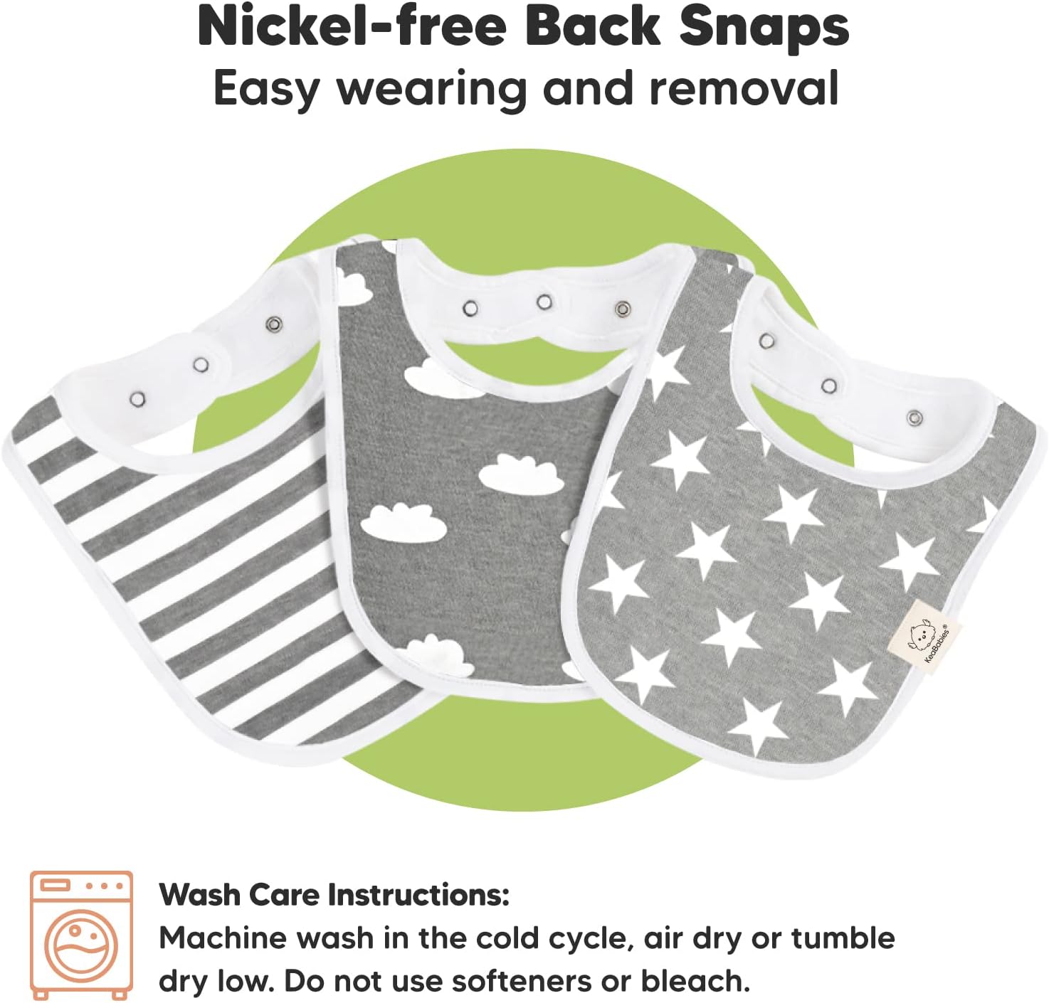 3 Adjustable Size With Soft Seams – With 2 sets of easily fasten nickel free snaps, you can adjust the girl and boy bibs according to your baby’s neckline. The soft wrapped organic cotton seams provide extra comfort for your baby and they won’t feel a thing while having the baby cotton bibs on. Suitable for newborn babies up to 24 months.