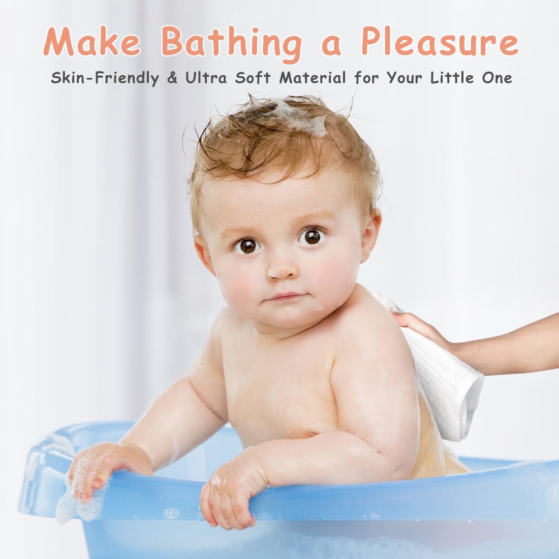 【Versatile Use】Each washcloth measures 10×10 inches, offering a perfect balance between functionality and portability. Apart from bath time, these washcloths are perfect for wiping your baby’s face, hands, and body, or as burp cloths.