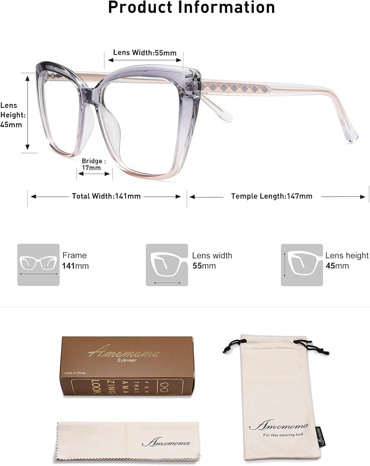 Customers appreciate the eyeglasses’ style, build quality, and fit. They find the glasses lightweight, not flimsy, and durable. Many customers appreciate the clear vision and helpful reading size. The eyeglasses are also considered good value for money and comfortable to wear.