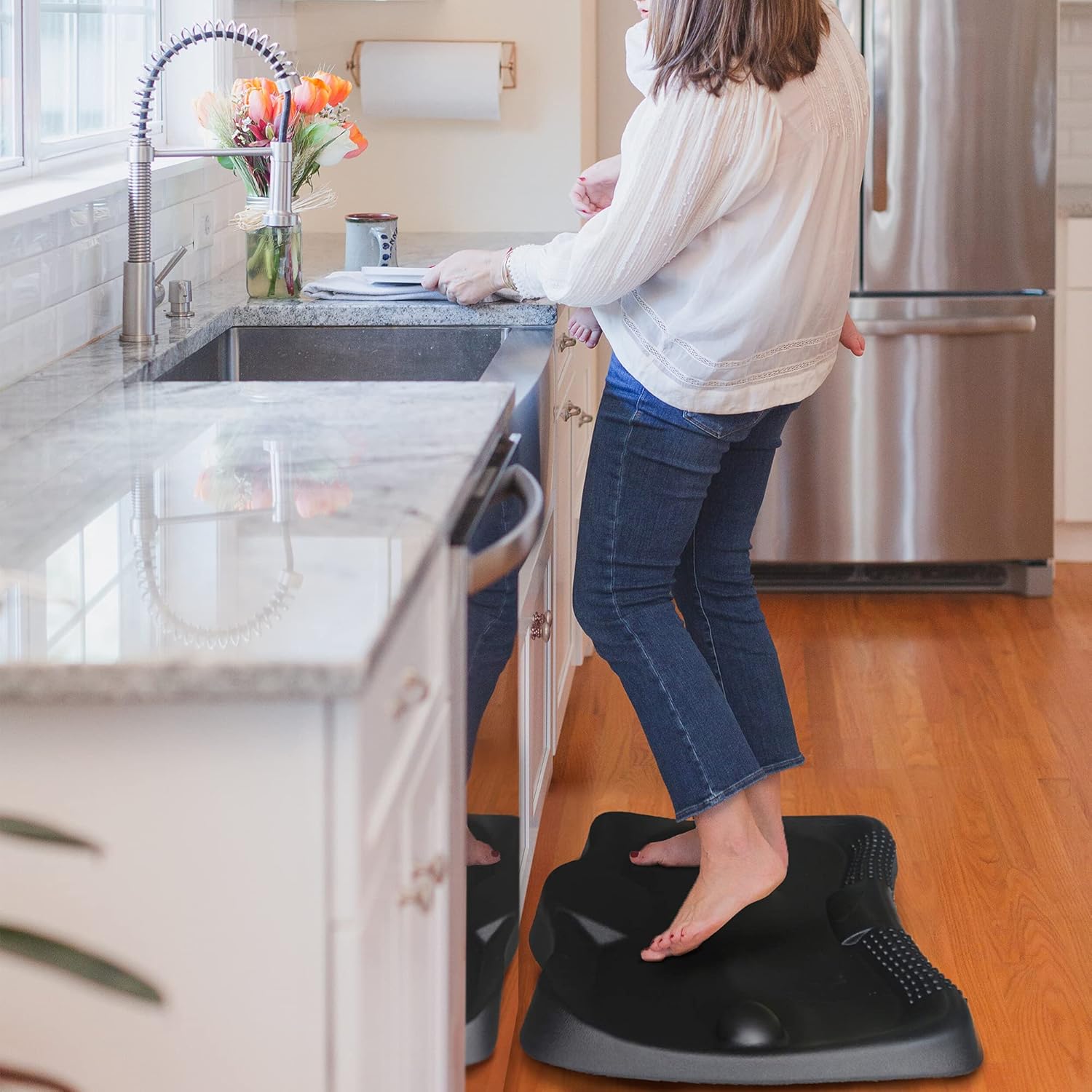 COMFY & ERGONOMIC: Standing Desk Mat with a custom support track, front and back ramp calf exercise, massage mounds, and an acupoint massage bar, multi-section for comforting, 3D-structure drives subconcious movements! you won’t get bored by standing all day long& end up with more healthy body parts after a day’s work.