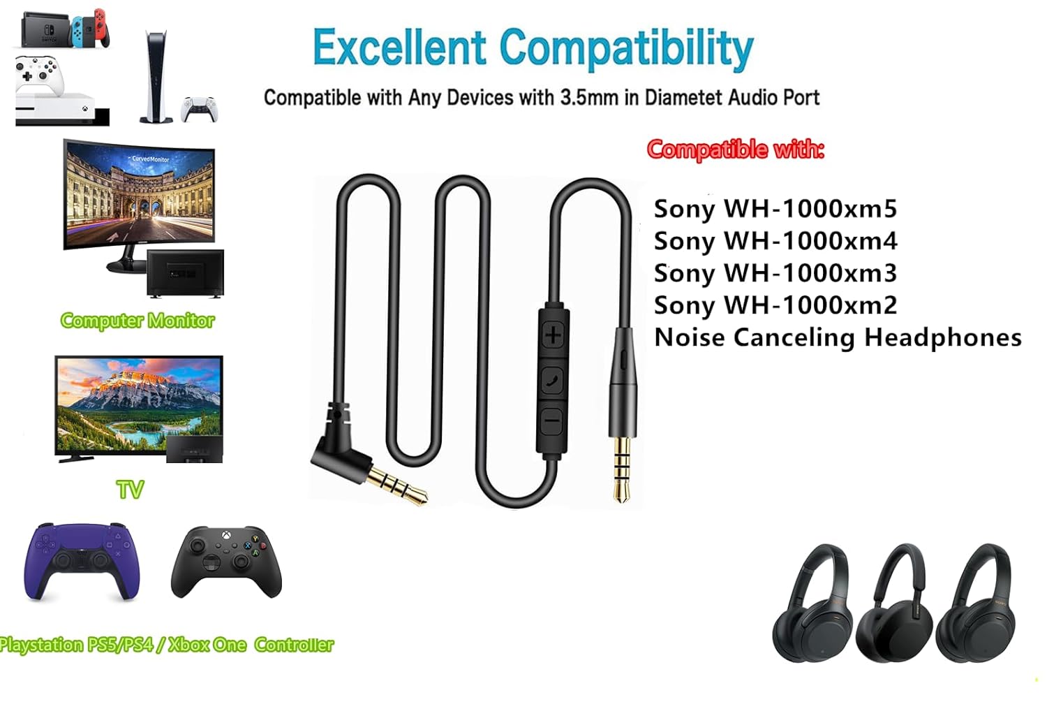 Remote talk audio cable replacement The headphone cord is suitable for wireless headphones with a 3.5mm jack, including Sony WH-1000xm5 WH-1000xm4 WH-1000xm3,2 Noise Canceling Overhead Headphones