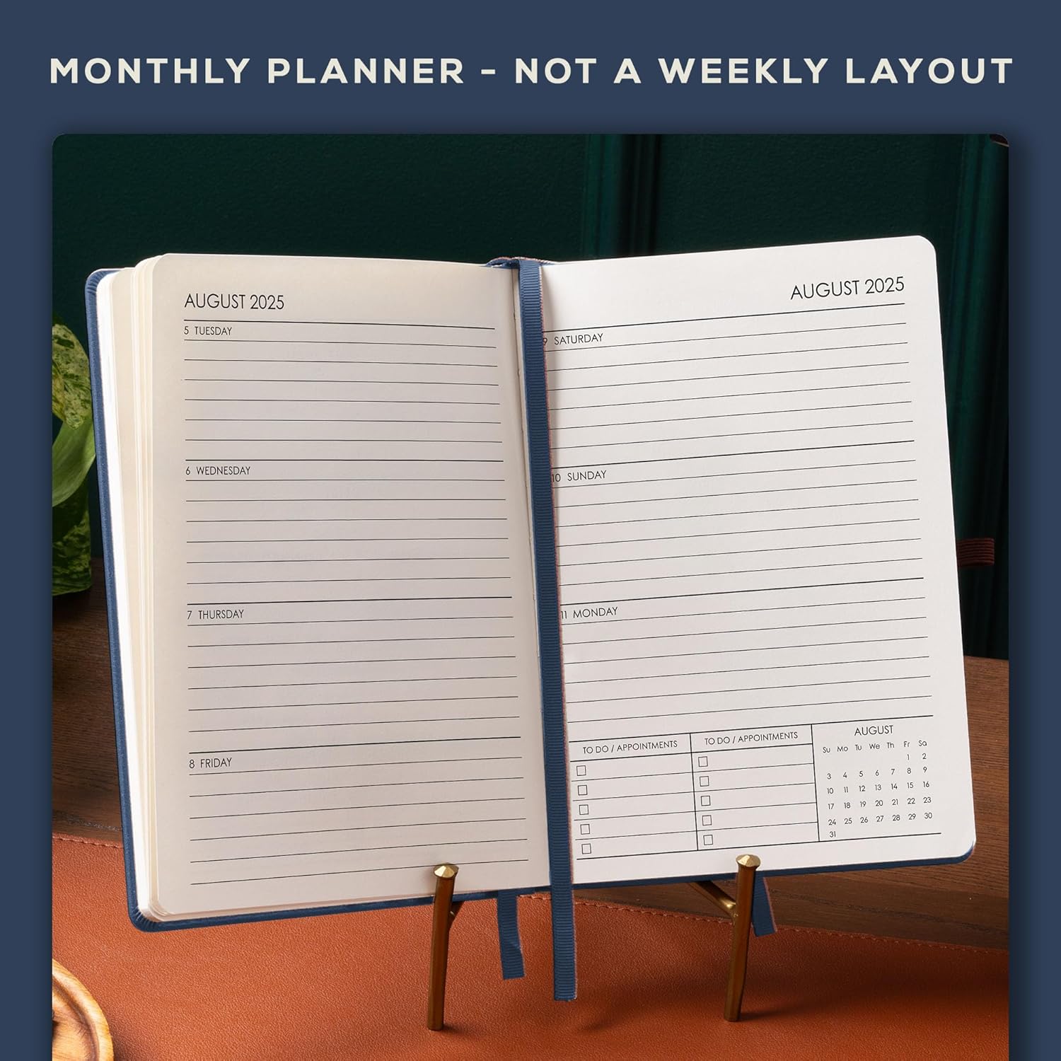 This 2025 Academic Planner is a must-have for anyone looking to stay organized in style. From the moment you open it, the quality is evident: the premium 120gsm paper ensures smooth writing, resisting ink bleed and ghosting, so every entry looks neat and professional. Whether you’re using the full-year overview, the monthly spreads, or the daily entry sections, it offers ample space to jot down appointments, goals, and to-do lists.One of the standout features is the compact A5 size (8.3×5.8″), making it easy to carry around without sacrificing functionality. Whether you’re at your desk or on the go, it fits perfectly into a bag. The planner also includes extra months for January, February, and March 2026, making it a long-lasting investment.The design is sleek and sophisticated, featuring vegan leather (aka Pleather) with a London-inspired finish that exudes class. It’s the perfect balance of style and substance, ideal for both personal and professional use.Finally, the planner is packaged in a beautiful signature gift box, making it an excellent gift for any occasion. Whether for yourself or as a thoughtful present for someone special, this planner combines elegance with practical organization.