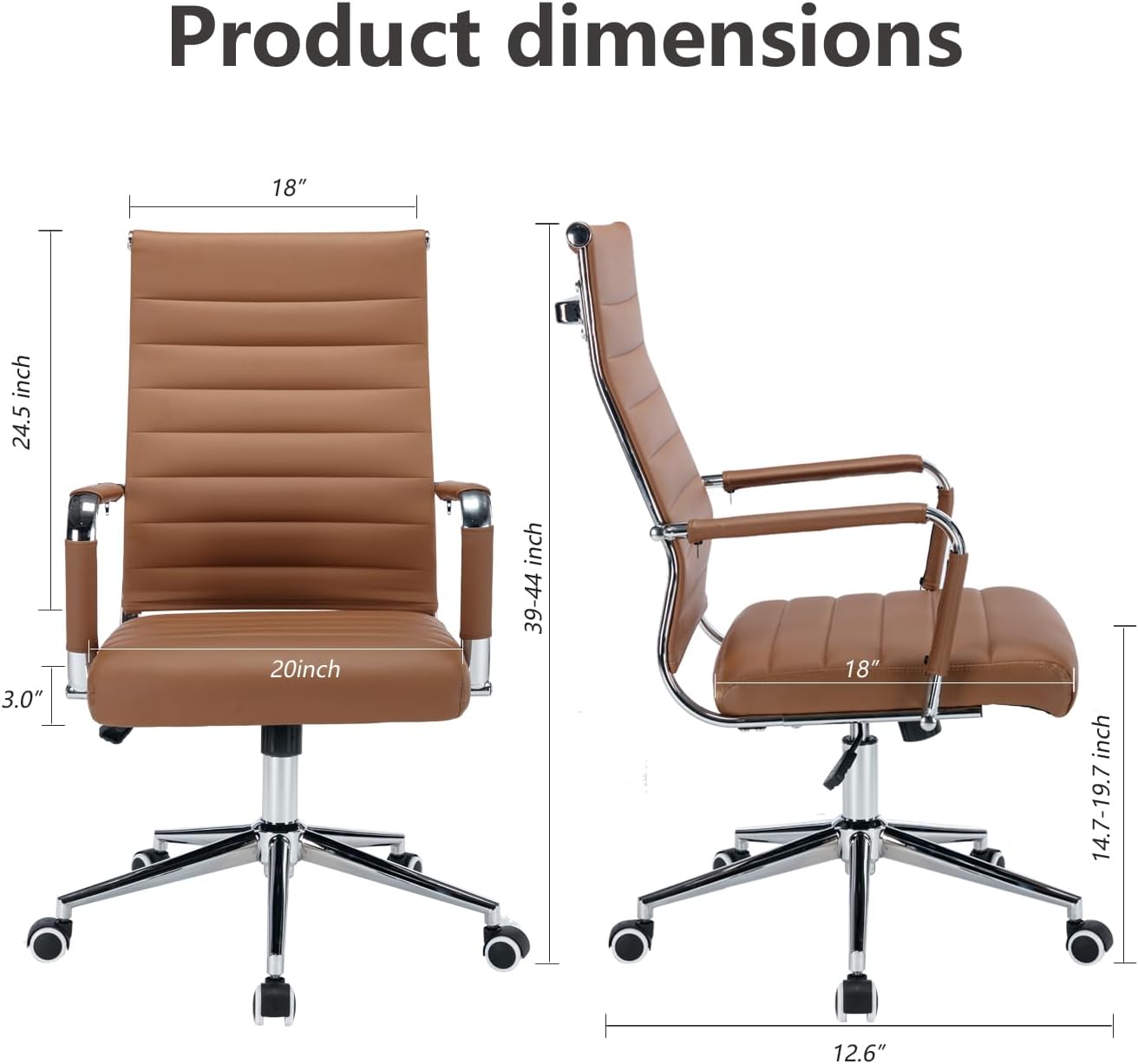 I recently purchased this Office Desk Chair, and I’m quite satisfied with my purchase.Pros:1. Design & Aesthetics: The sleek, modern ribbed design in grey leather blends perfectly with my home office setup. It gives a professional yet stylish vibe.2. Comfort: The ergonomic design provides decent back support, making long hours of work manageable. The seat cushion is firm yet comfortable.3. Mobility: The wheels roll smoothly across both hardwood and carpeted surfaces, making it easy to move around.4. Assembly: Setting up the chair was straightforward, with clear instructions provided.Overall, this chair strikes a great balance between style, comfort, and functionality. It’s an excellent choice for a home office or conference room, especially at its price point.Would recommend it to anyone looking for an affordable yet elegant office chair!