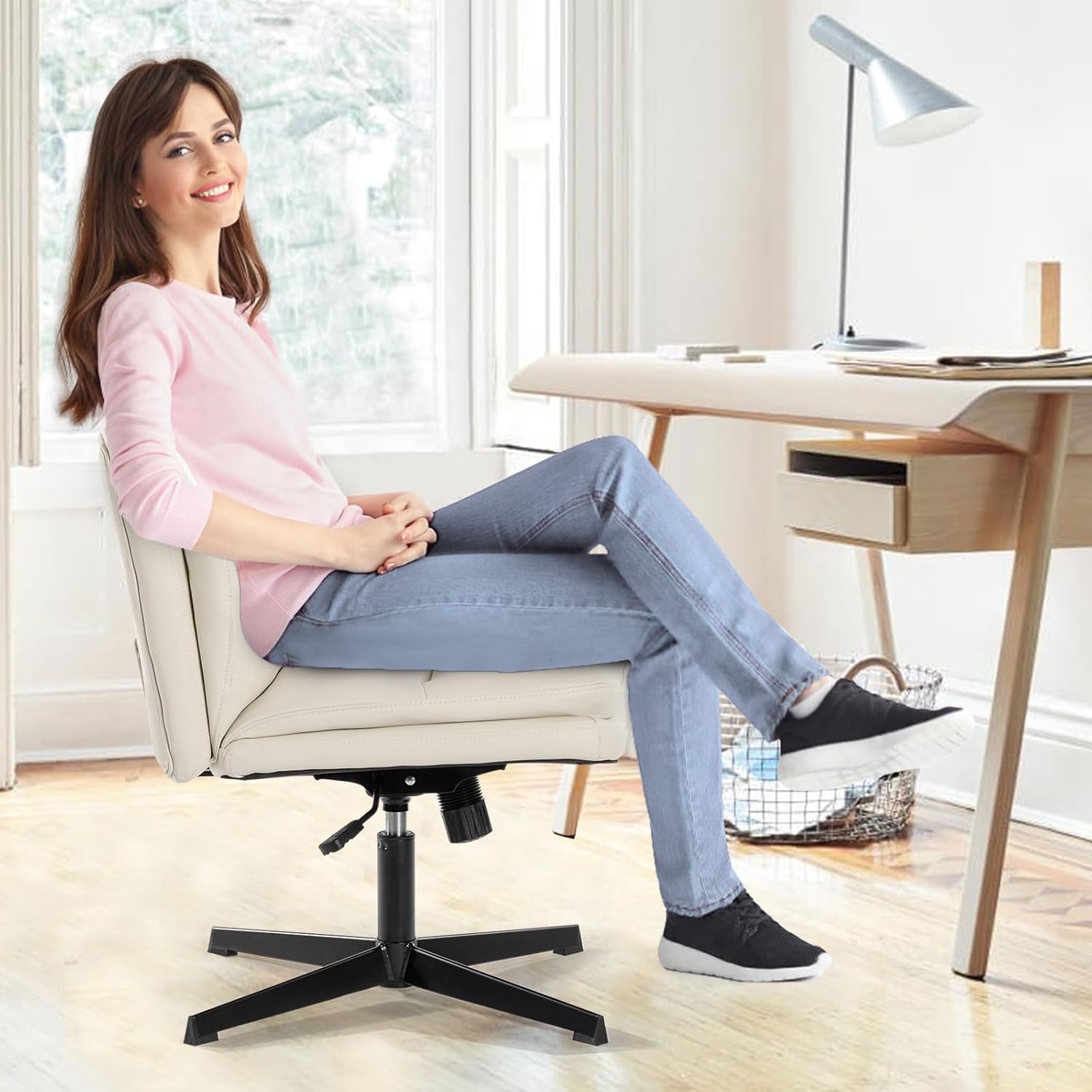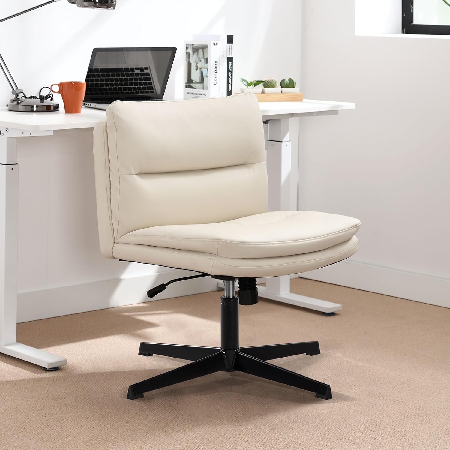 Read this review if you’re a tall (5’7”) woman who works from home and is looking for a stylish AND comfy WFH office chair.I’ve sat on many types of desk chairs; generic office chair, Ikea office chairs, Secret Labs gaming chair, Costco’s DMS brand chair, and I honestly find this Amazon chair better than all of these 😅 I wanted something first and foremost; comfortable, durable and stylish. This chair seems to fit all my expectations.The bottom seat is squishy enough that it’s comfy for long periods, but firm enough for lower back support. The back cushion is a lot thicker and definitely more squishy than the bottom-so it feels good on your back. Additionally, the upper half of the back cushion seems to be filled with extra stuffing that actually keeps your back upright.And, the back cushion hits just at the bottom of my scapula which let’s me arch my back to stretch.I was, however, hoping to use this chair to sit cross-legged—see photo (which is why I was open to an armless chair), but as you can see in the picture there isn’t much room to cross your legs—that’s on me tho as I should have done more research. I personally don’t miss having arms cause I have a sit/stand desk and my past chair’s arm rests would always interfere.I’m still happy with my purchase and I really recommend it if you’re a WFH girlie like me who wants a comfortable chair, but also needs it to fit your office aesthetic 💅**PS the light grey kinda comes off a little baby blue-ish in real life. Kinda wish I got the brown one tbh, but would hate to have to return a perfectly good chair for a cosmetic reason.