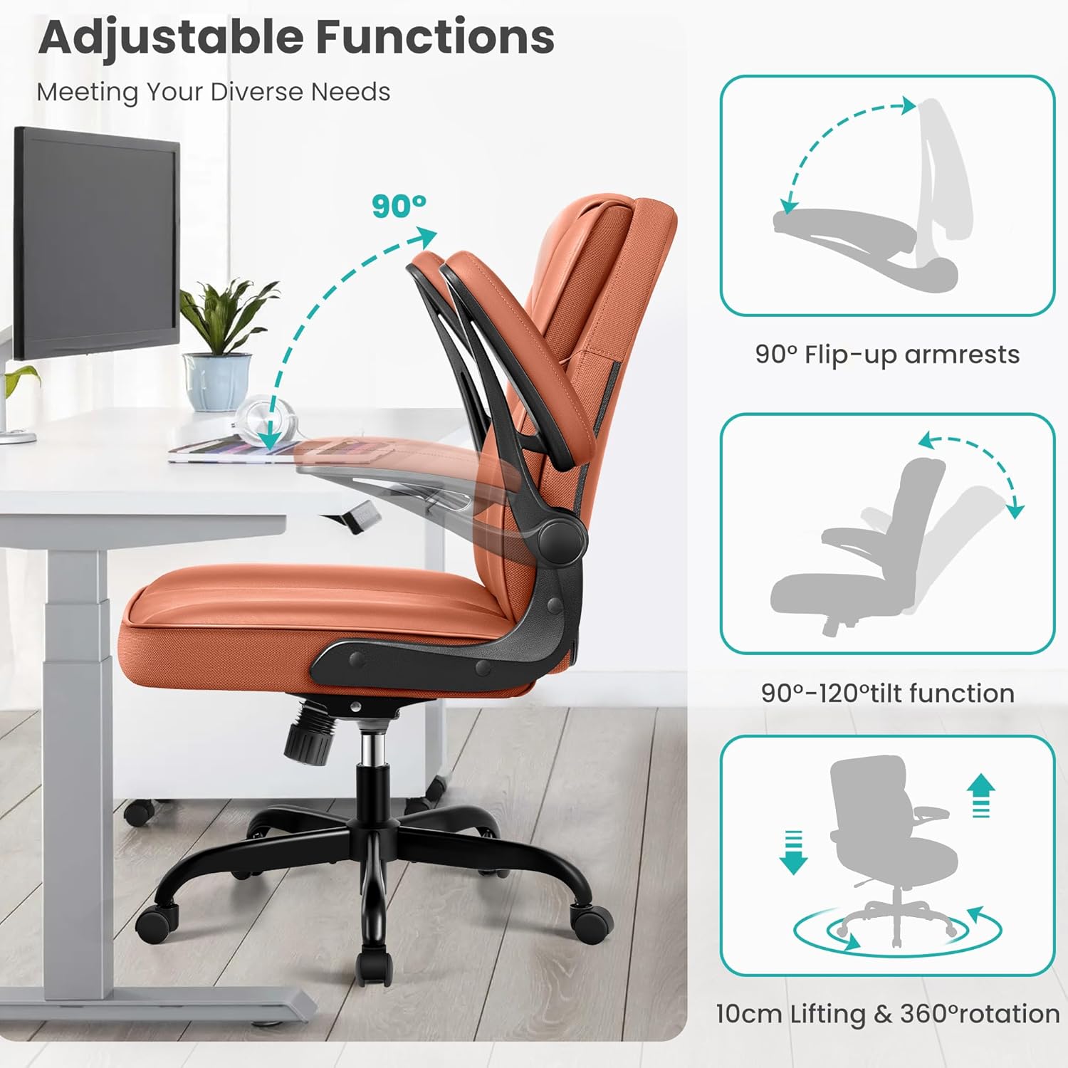 Ergonomic Design: This home office desk chair is equipped with built-in lumbar support; It ensures optimal back and lumbar support during work periods, helping you maintain good posture during prolonged use