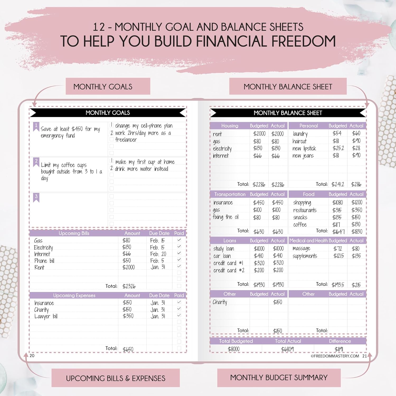 BUDGET PLANNER AND MONTHLY BILL ORGANIZER – Financial planner achieve your goals using the law of attraction, learn how to set big goals, be happy and manage your time well, and follow the same methods millionaires around the world use to set goals and achieve them