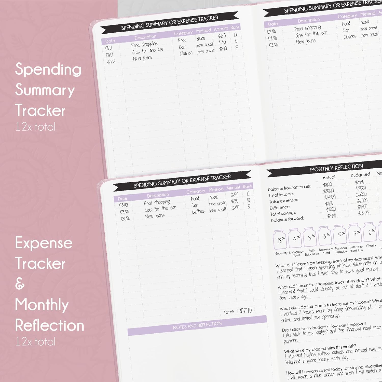 UNDATED BUDGET PLANNER – Undated budget planner is a deluxe planner & wealth planner showing you how to reprogram your mind to master financial success. A5 Size (5.8 x 8.3 inches), thick paper 100 gsm, inner pocker, financial success road map, 12 monthly planning overviews made in high quality lay-flat binding with 144 pages of impactful budgetting lessons, includes 3 sheets colorful budget affirmations and stickers. The millionaire secrets helps you to find a way to pay off your debts, track your expenses, increase savings, and build emergency fund.