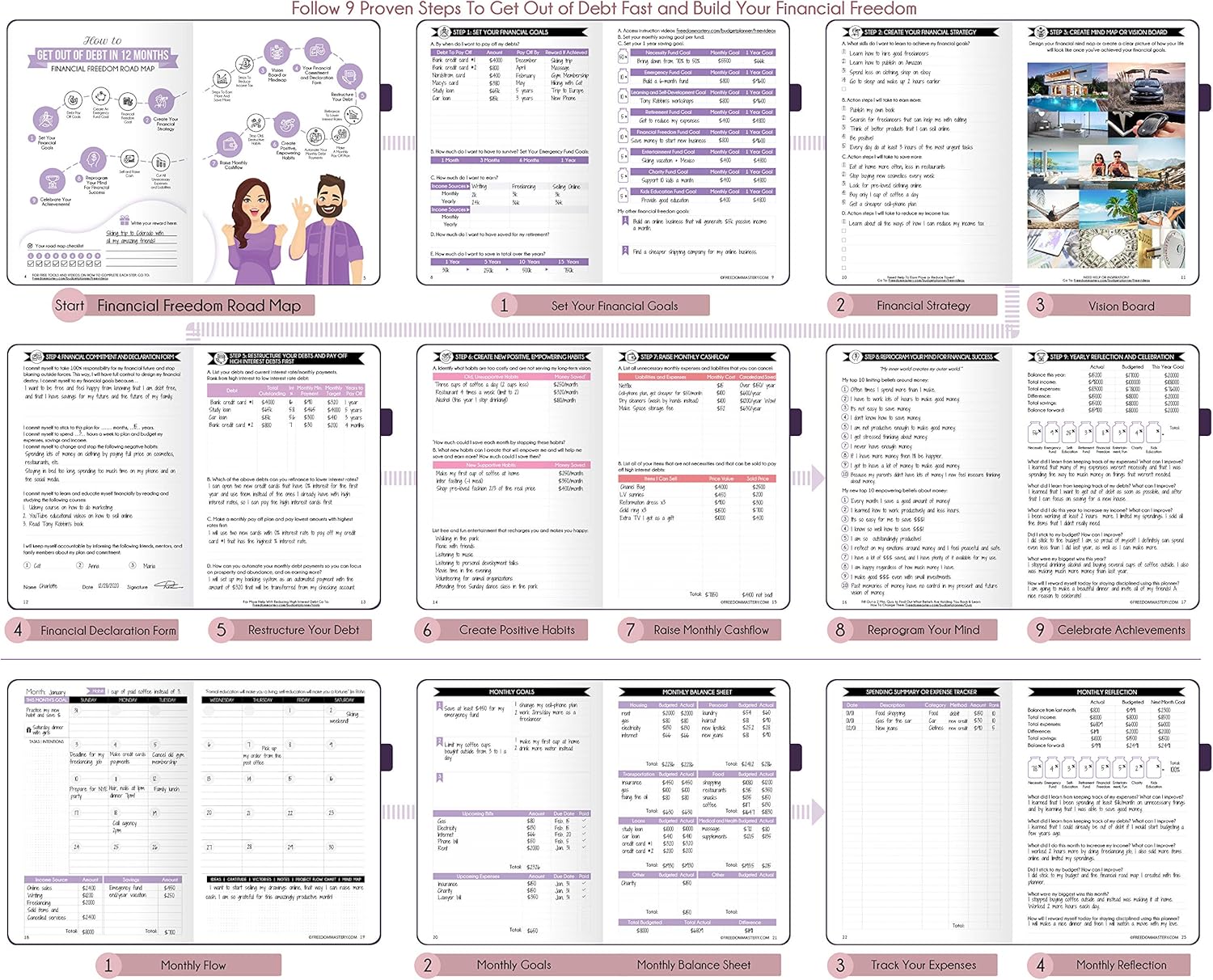 BUDGETING PLANNER – Your family financial planner partner. Reduce overwhelm, stress, and fix procrastination, follow a unique 8 step system that will help you bring back harmony, clarity, and peace in your life while achieving your goals. This planner is perfect birthday gifts for men and women, anniversary gift for couple, and christmas gift, mothers day. Give the gift of organization and inspiration with this planner