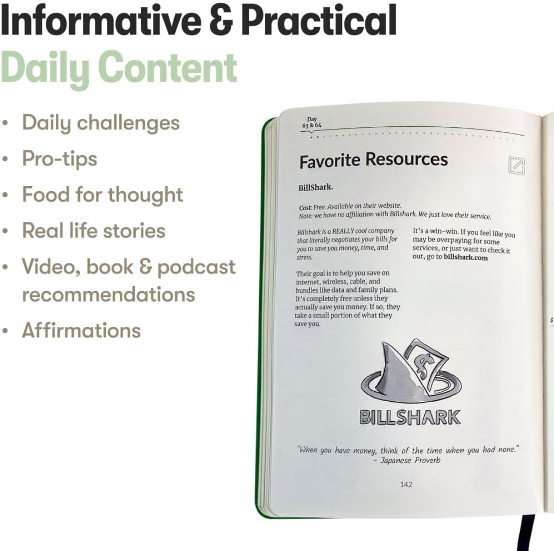 Daily Content: Each day you’re given new learning tools, inspiration, and guidance for improving your relationship with money and managing your budget. These include expert tips, actionable strategies, daily challenges, affirmations, links and descriptions to phenomenal videos, podcasts, recommended resources, and more.