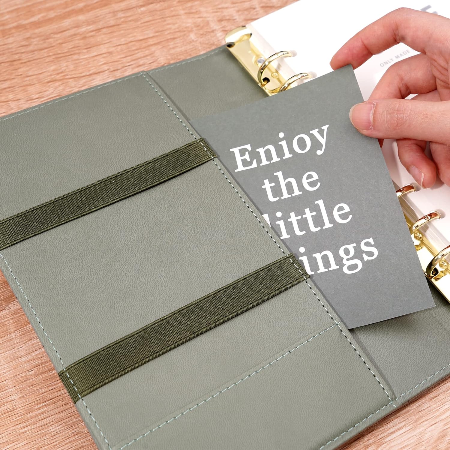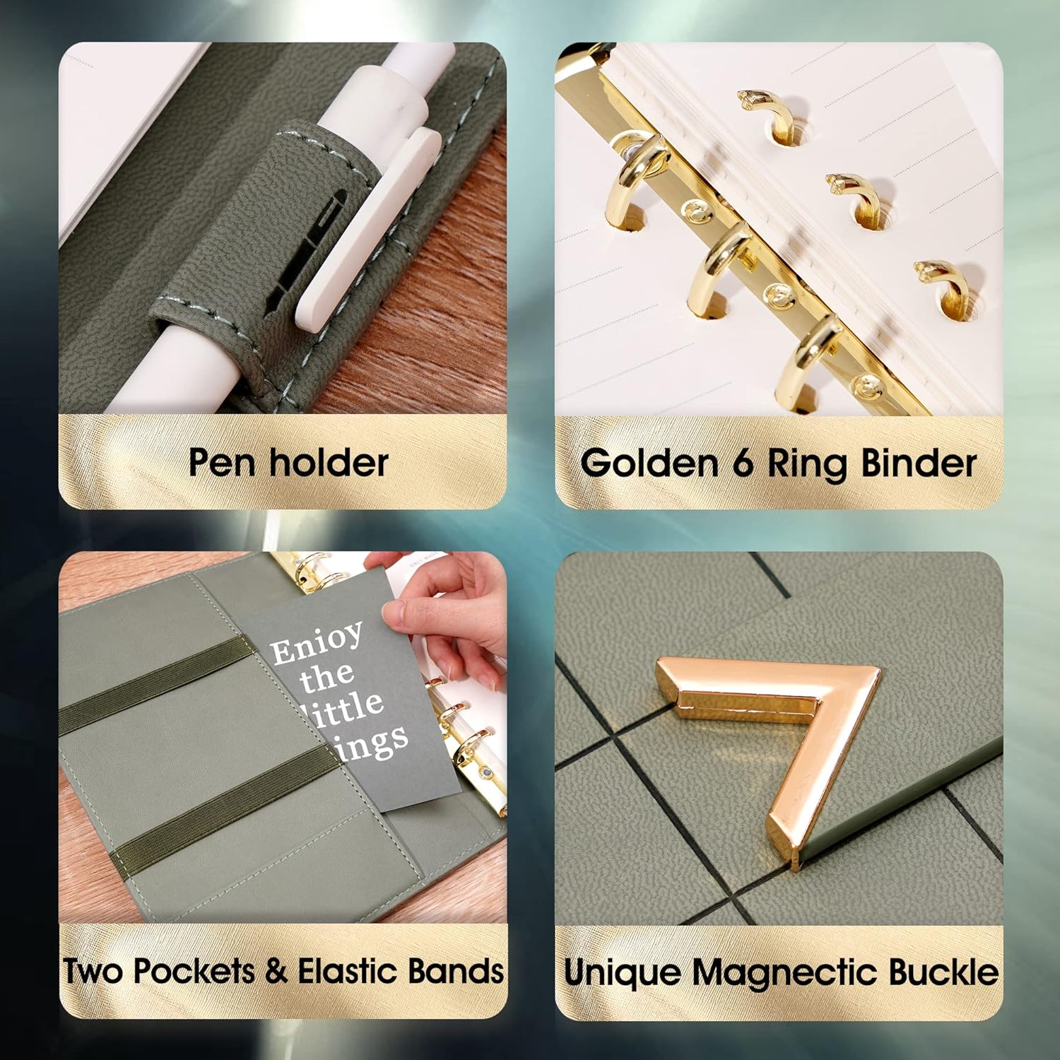 UNIQUE DESIGN: The notebook comes with several card pockets which can be used to store your business card,ID card,Bank card,VIP card or tickets and photos.Calender make you smart and efficient in daily life and work; 6 Ring Binder is used to fix the inner page, just press the small button up and down freely; Pen Holder can hold the pen firmly, fast and easy! Magnetic Button has a strong enough magnetic force to wrap the whole book, perfect ! Hardcover book for extra writing support.
