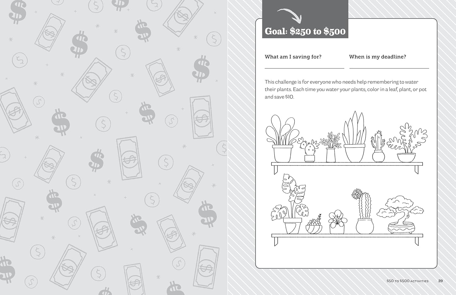 Set your own pace―Each savings challenge in this activity book includes space to write down what you plan to use the money for and set a deadline that makes sense for you.