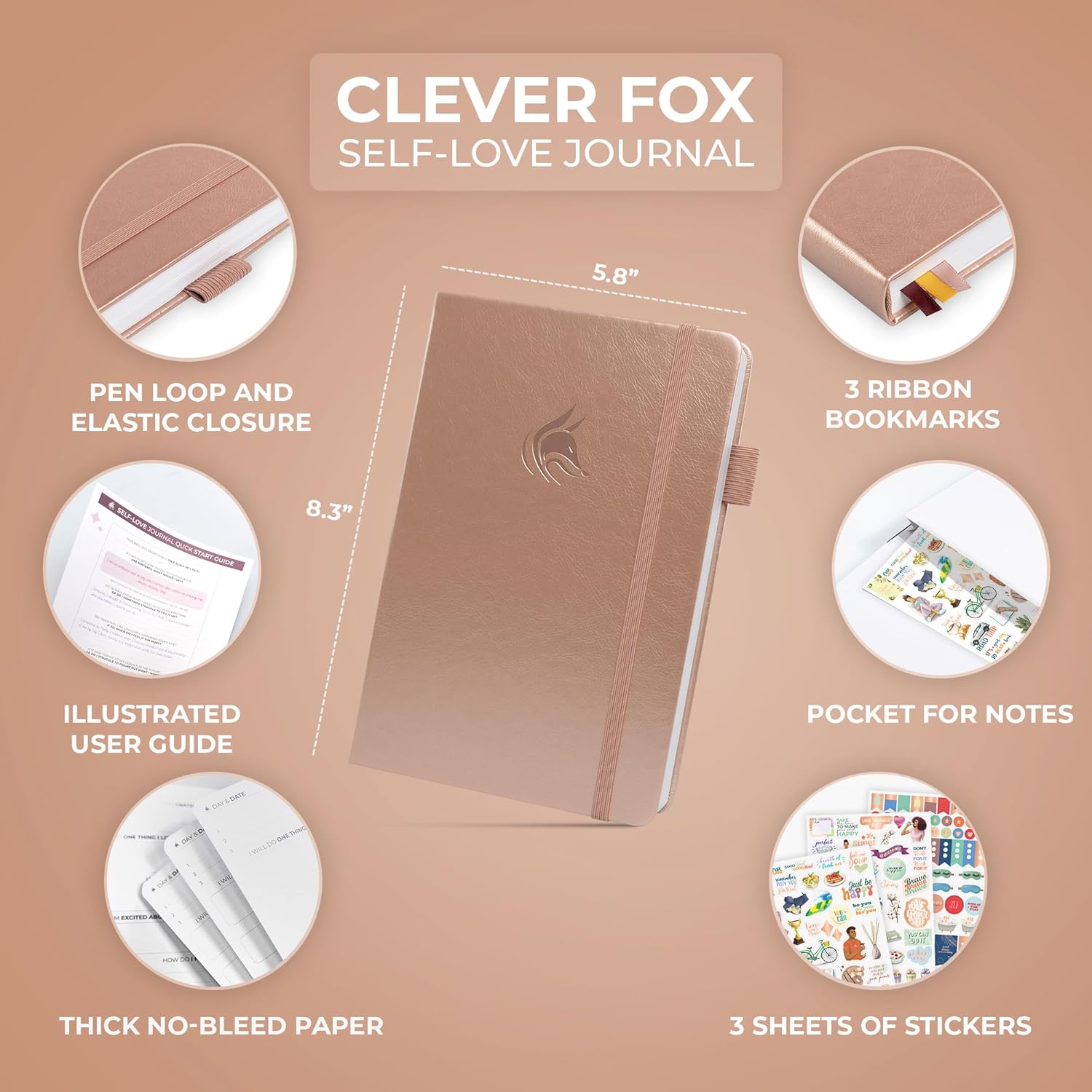 Clever Fox Self-Love Journal – Guided Self-Discovery Journal for Self-Care, Reflection & Self-Help – Mental Health Journal to Practice Gratitude, Mindfulness & Self-Improvement – A5 Size – Rose Gold
