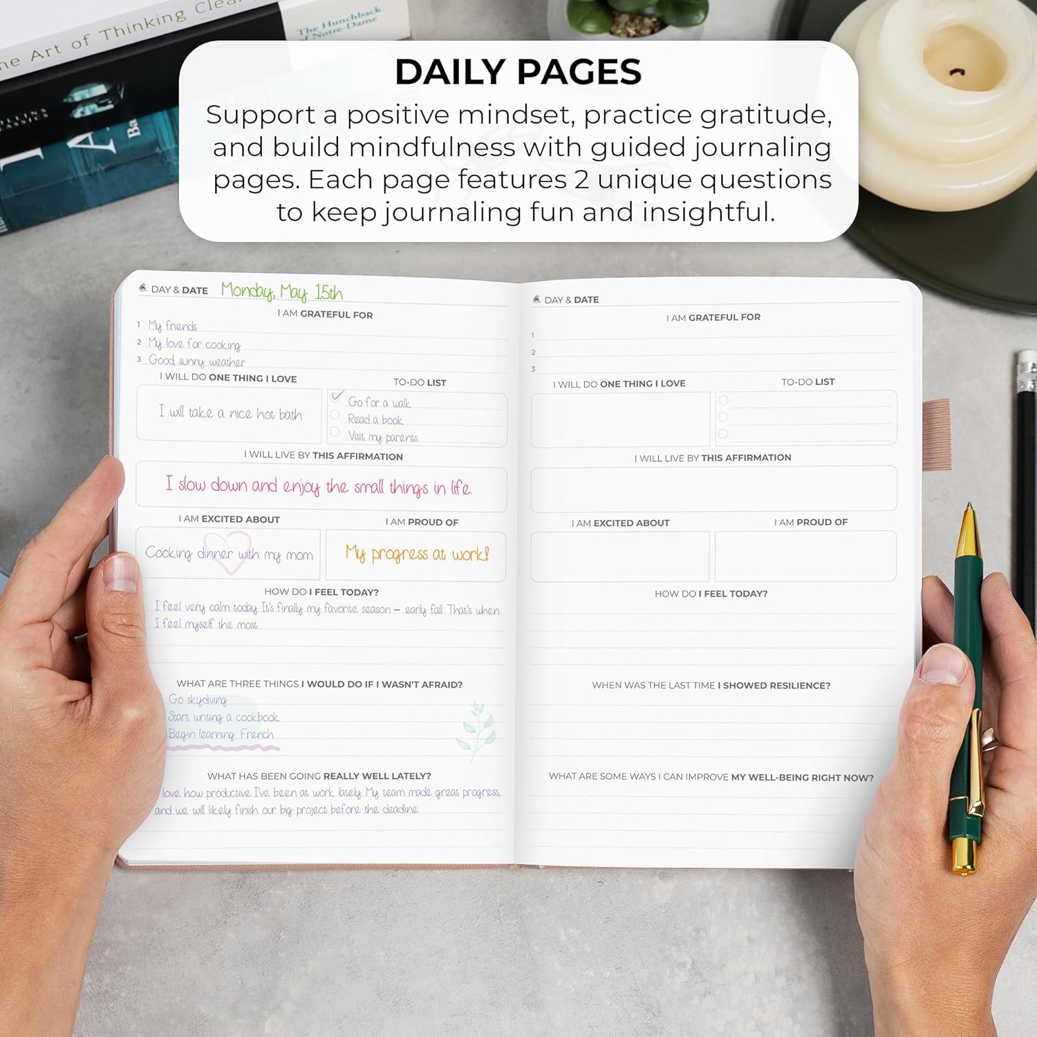PART 2: 180 DAYS OF JOURNALING – The 2nd part of the self-reflection journal consists of 180 daily pages that prompt you to practice gratitude and affirmations, do more of what you love, reflect on how you feel, and answer 2 questions that change daily.