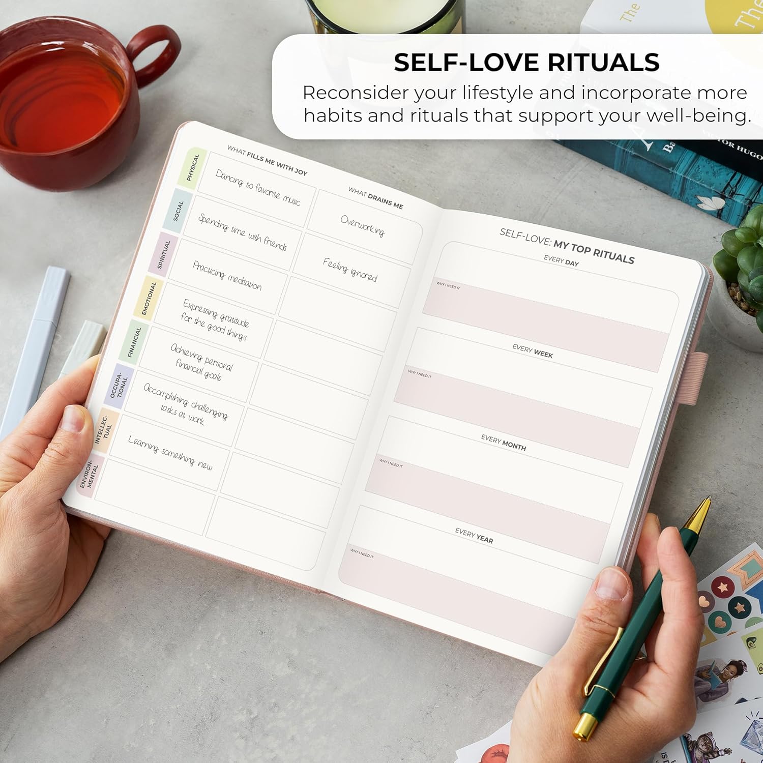 A GUIDED JOURNEY TO SELF-LOVE –Spanning 180 days of journaling, this self-love journal blends insightful prompts with practical exercises to deepen your sense of self-worth, cultivate self-compassion, and consistently practice unconditional self-love.