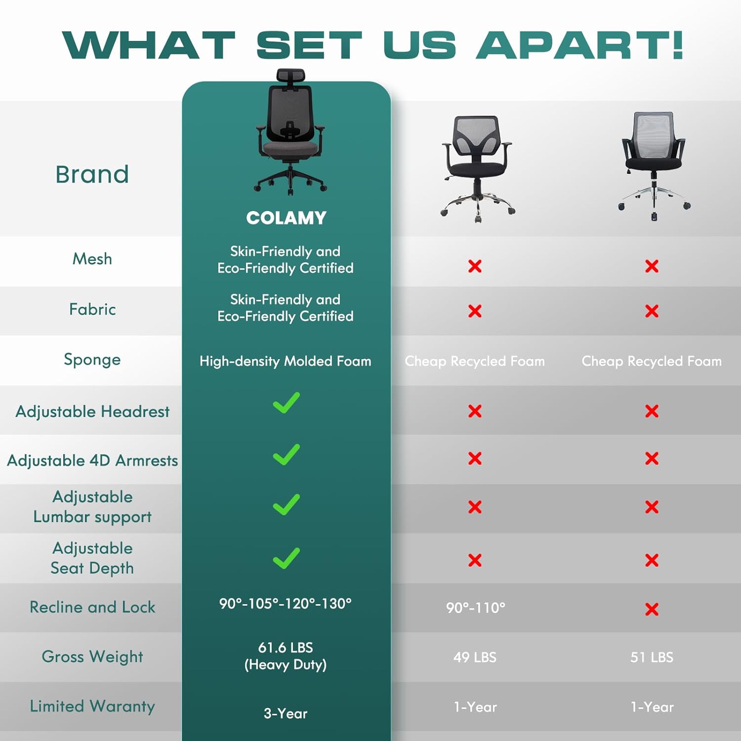 ⏩【ERGONOMIC HOME OFFICE DESK CHAIR】Features adjustable headrests, 4D armrests, adjustable lumbar support and height, 4-position tilt lock, and sliding seat, are all included in one chair. COLAMY Top-end Series chairs will upgrade your comfort to a new level.