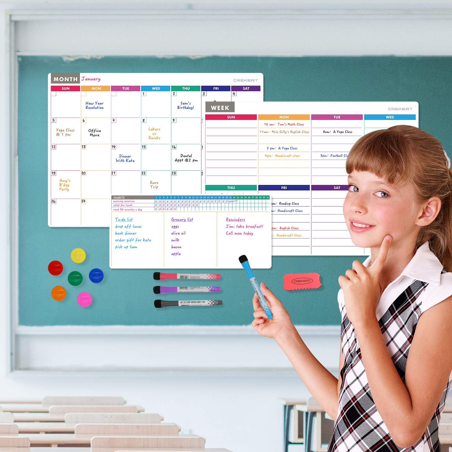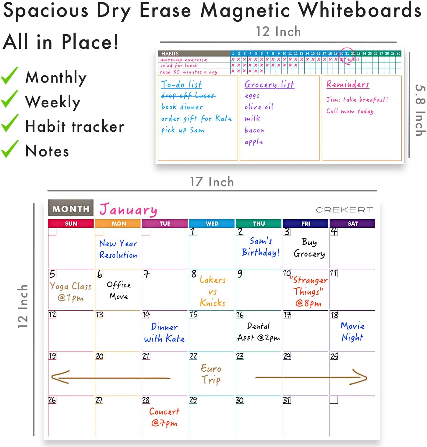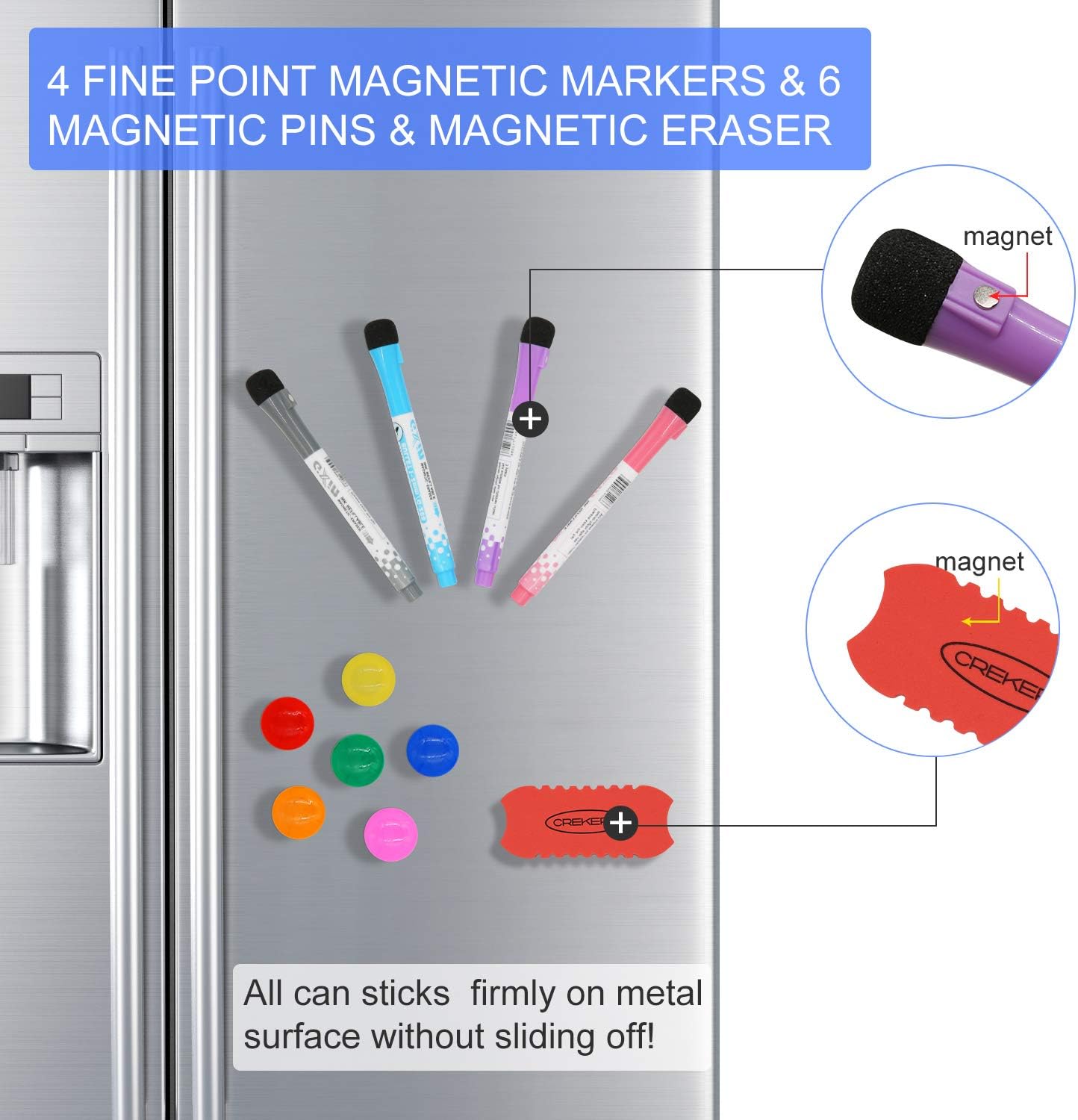 CREKERT Magnetic Whiteboard for Refridgerator Dry Erase Calendar, Monthly Weekly Daily Planner with Habit Tracker, 6 Pins 4 Pens 1 Eraser