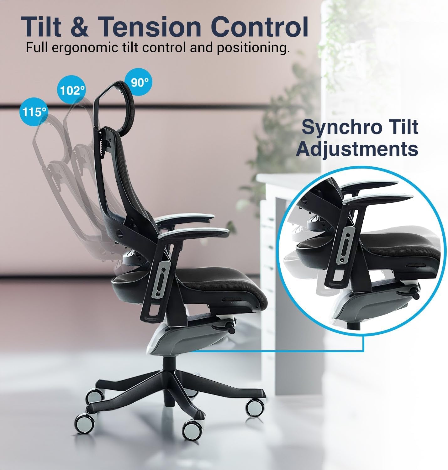 TAILOR-MADE SUPPORT FOR YOUR BODY – Experience customized hip curve support and increased overall comfort with the synchro-tilt mechanism of our desk chair ergonomic, adapting to your unique needs.