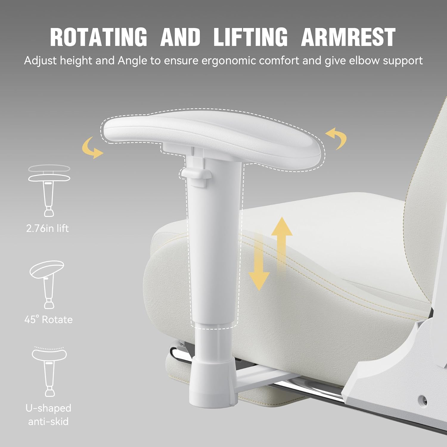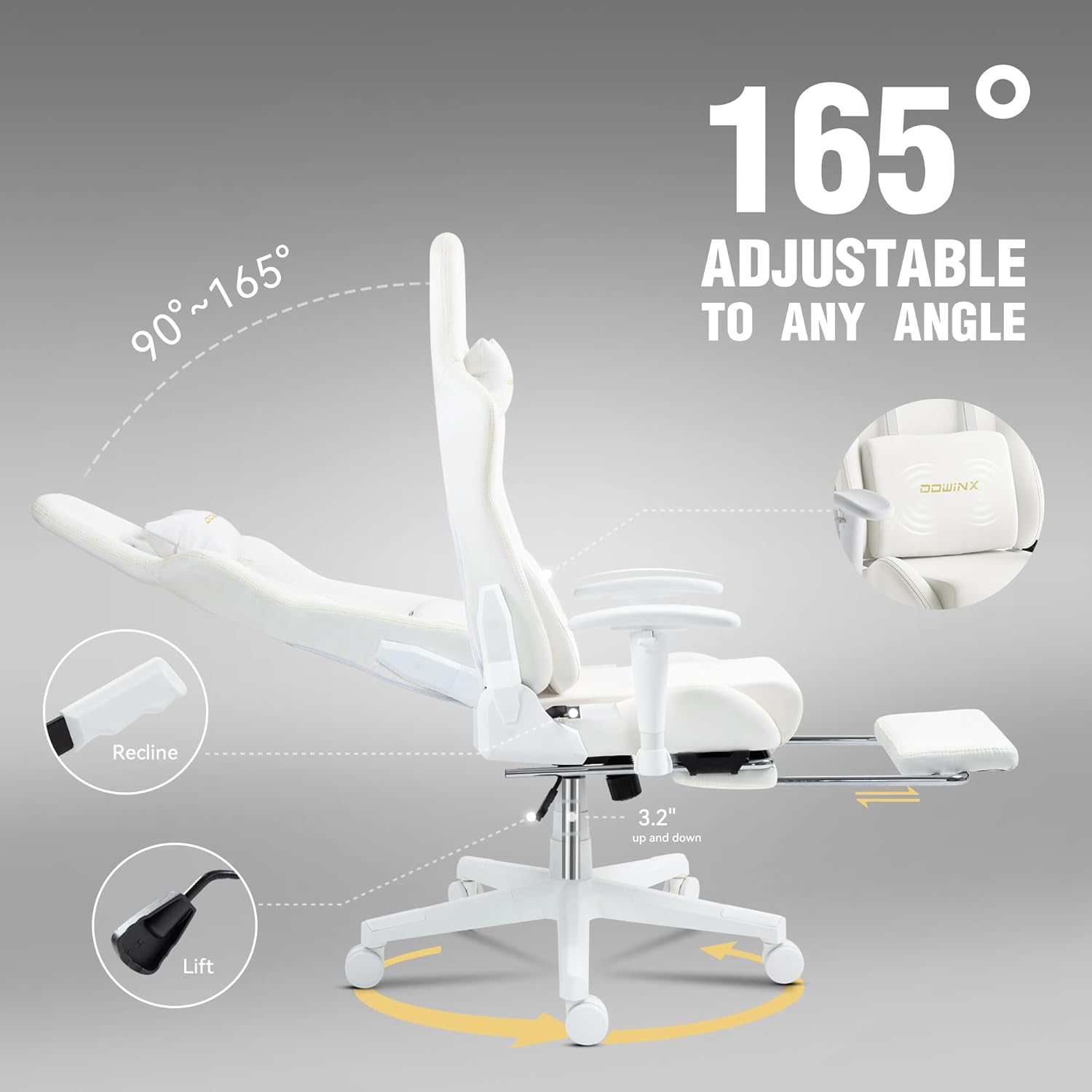 Adjustable Ease for Play and Relax: Whether you’re gaming, working, or relaxing, this video gaming chair has you covered. The backrest adjusts from a focused 90° to a relaxed 165° and includes an extendable footrest for ultimate comfort. The 2D armrests can be adjusted in height, and the armrest surface can be rotated for optimal support.