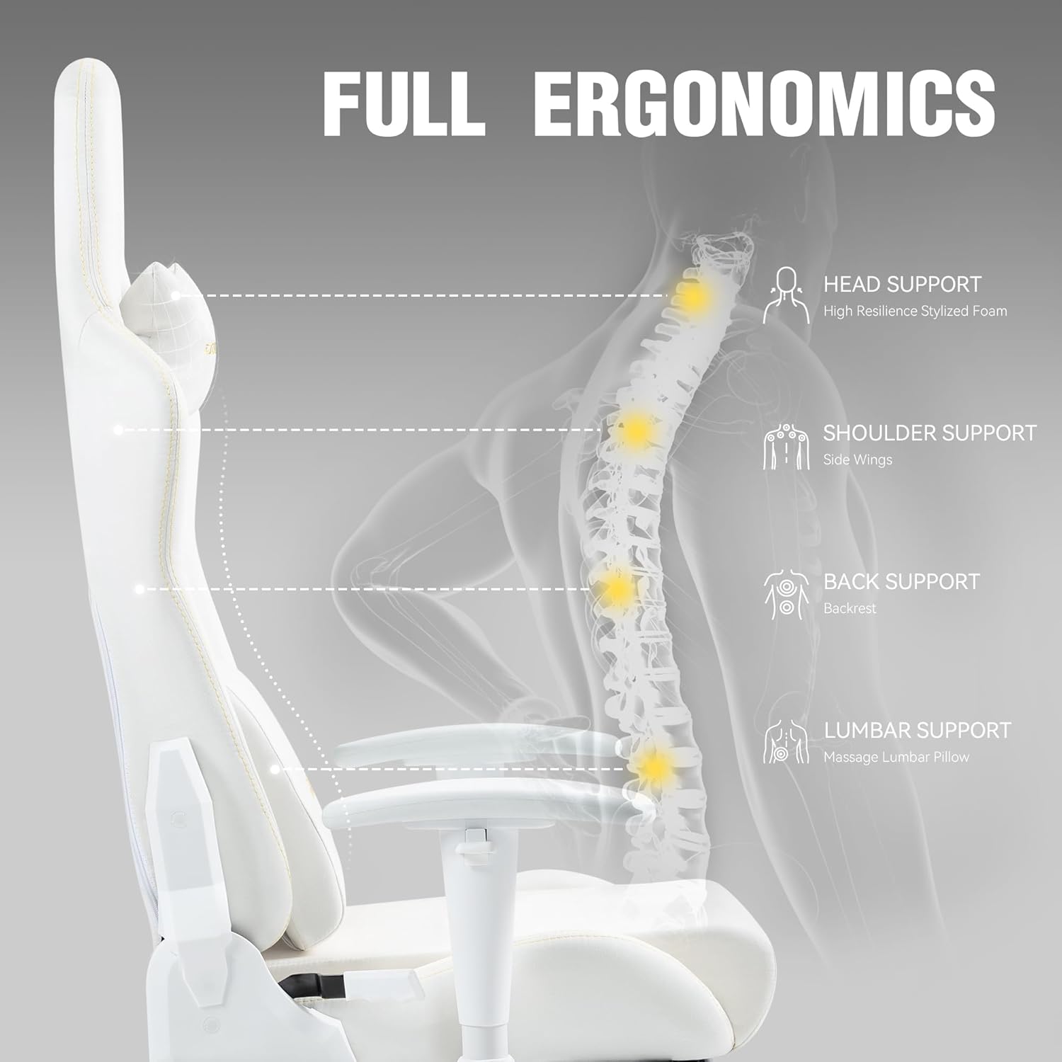 Meeting Daily Needs: The seat cushion is made of soft, high-density thickened sponge filling to prevent soreness from long periods of sitting. This makes the gaming chair a perfect choice for game rooms or modern offices. Enjoy the built-in massage function, ideal for extended play and work sessions.