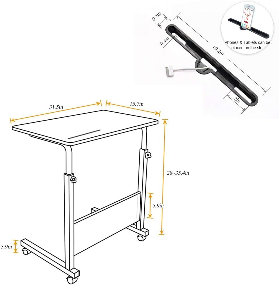 This is one of my best purchases. The design is so clever as it allows me to adapt this for different spaces. The height is adjustable and the wheels allow me to roll this anywhere easily. In addition, the legs are constructed in such a way that I can slide the desk under my chair, or wherever I am. In addition, it is quite sturdy which enable me to write or type. I’m really happy with this desk.