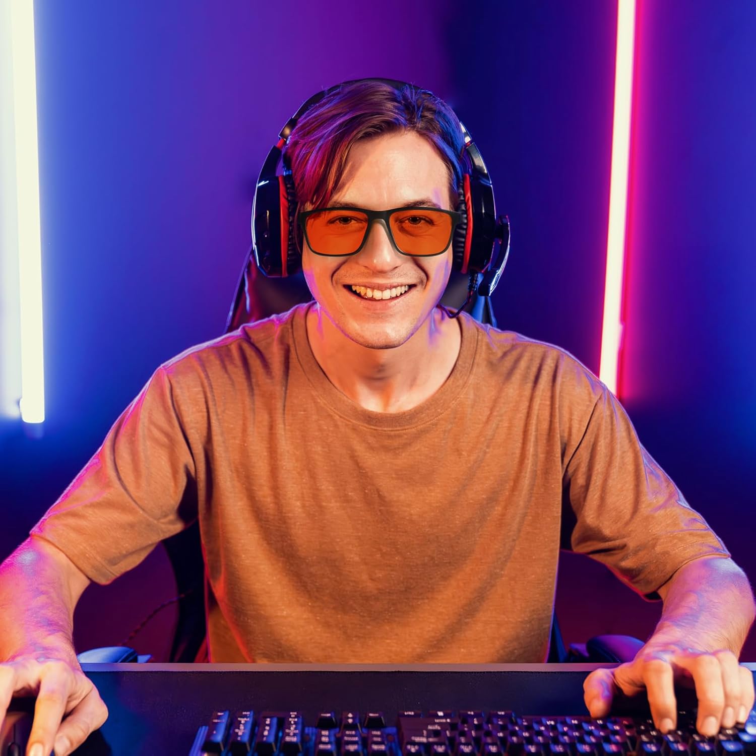 TR90 soft lightweight frame computer gaming glasses for men and women Orange lens filter more harmful blue light. Suit for computer games, office work, phones, ipad and TV