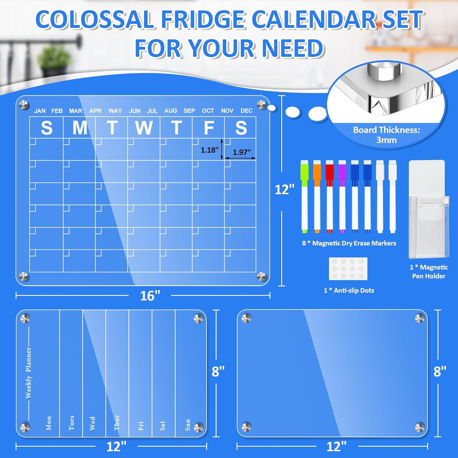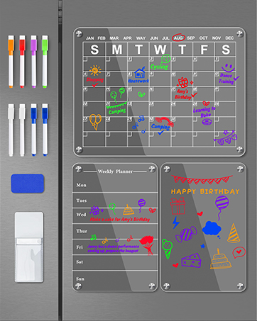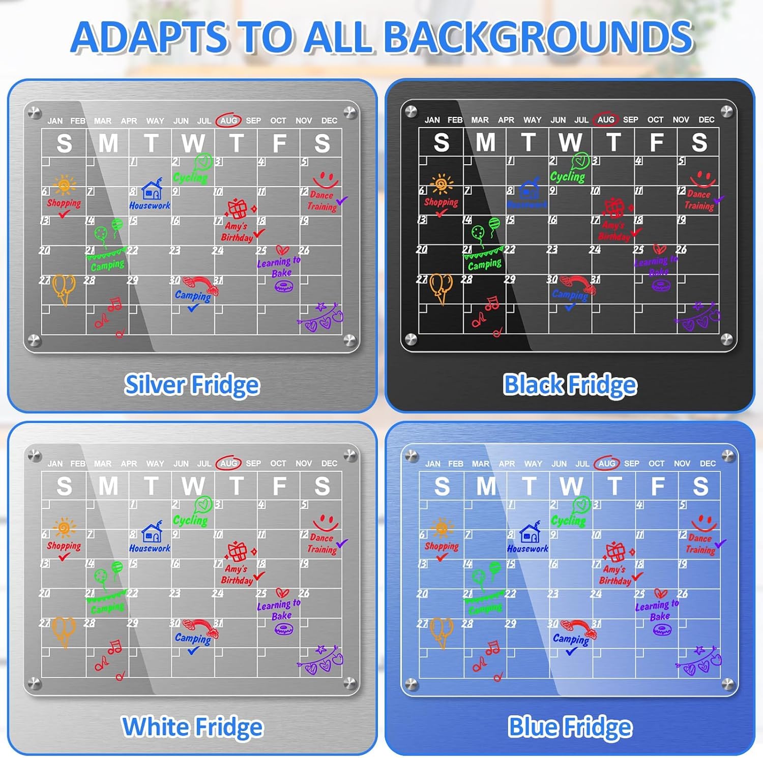 đăTRANSPARENT & HIGH QUALITY ARCYLIC MATERIALă- The magnetic fridge calendars are made of high-quality acrylic material, with smooth, strong and bright surface. Easy to clean and durable. The panel thickness is 0.12 inches, not easy to scratch and break. And the transparent design makes the magnetic acrylic calendar for fridge will not obscure the appearance of the refrigerator, simple and stylish.
