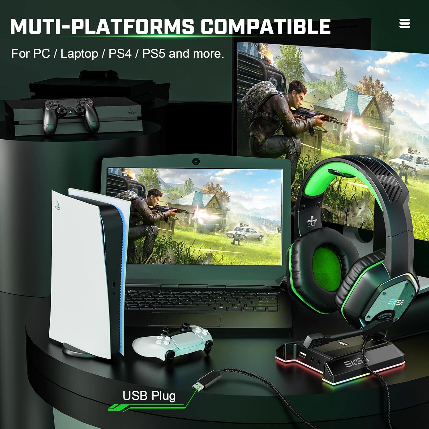 【Compatible PC/PS4/PS5/Mac】: Professional gaming headset for PC gamers, compatible with PC (Win 7, Win 8, Win 10), PS4, PS5 consoles, laptops, Mac, and other devices with a USB audio port.Extra-long 2.2m cable, providing gamers with flexibility and convenience during use.
